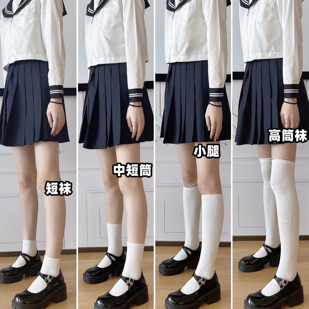 면 니트 커프 양말 일본식 JK 빈티지 밀크 화이트 미드 양말 어린이 클래식 퓨어 블랙 무릎 위 스타킹스토어 가기