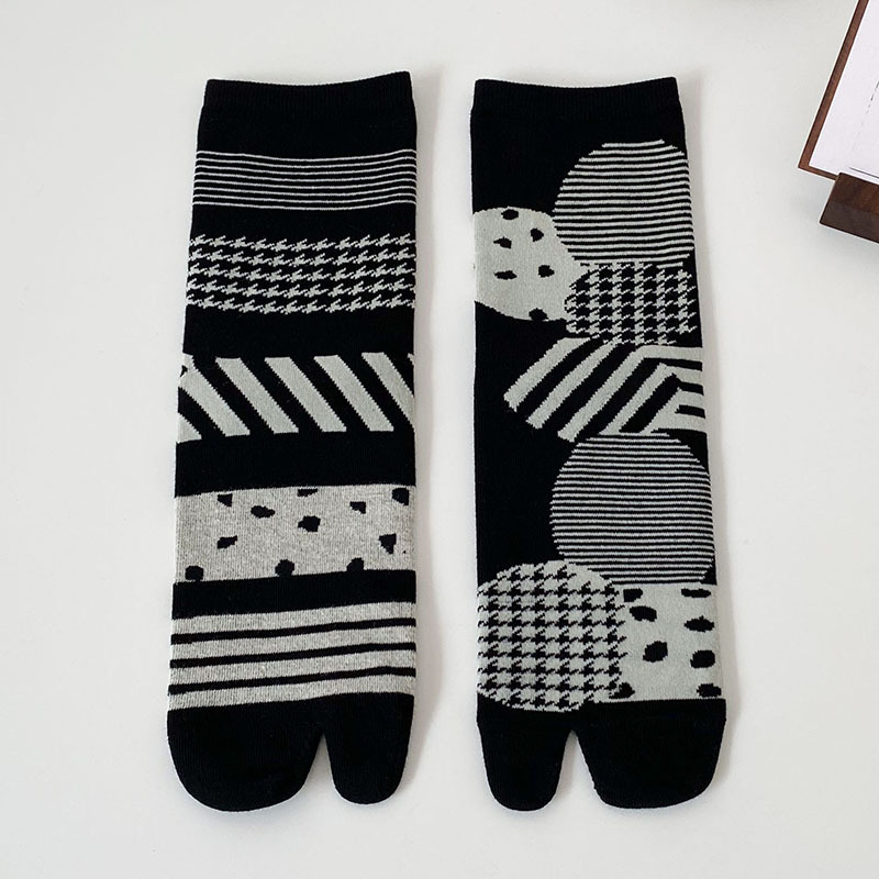 슬리퍼 신발과 양말 여성의 개성 두 손가락 양말 발가락 일본식 나무 신발 미드 튜브 면 양말 가을 개성 조수스토어 가기