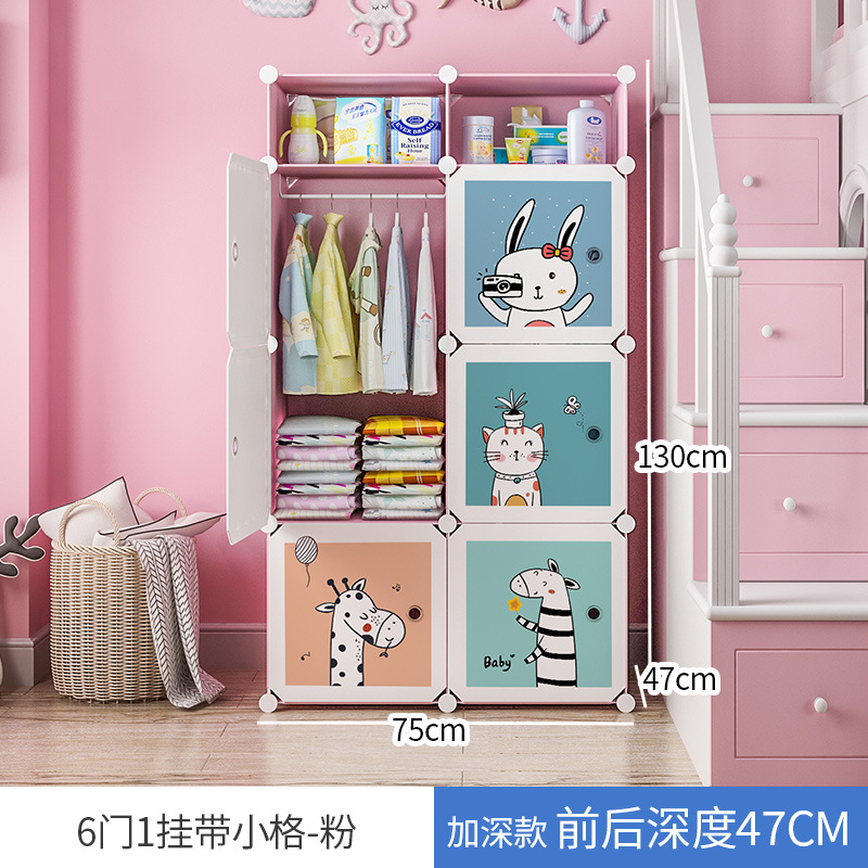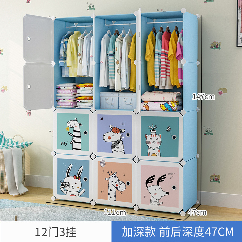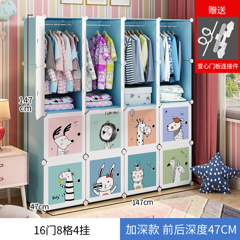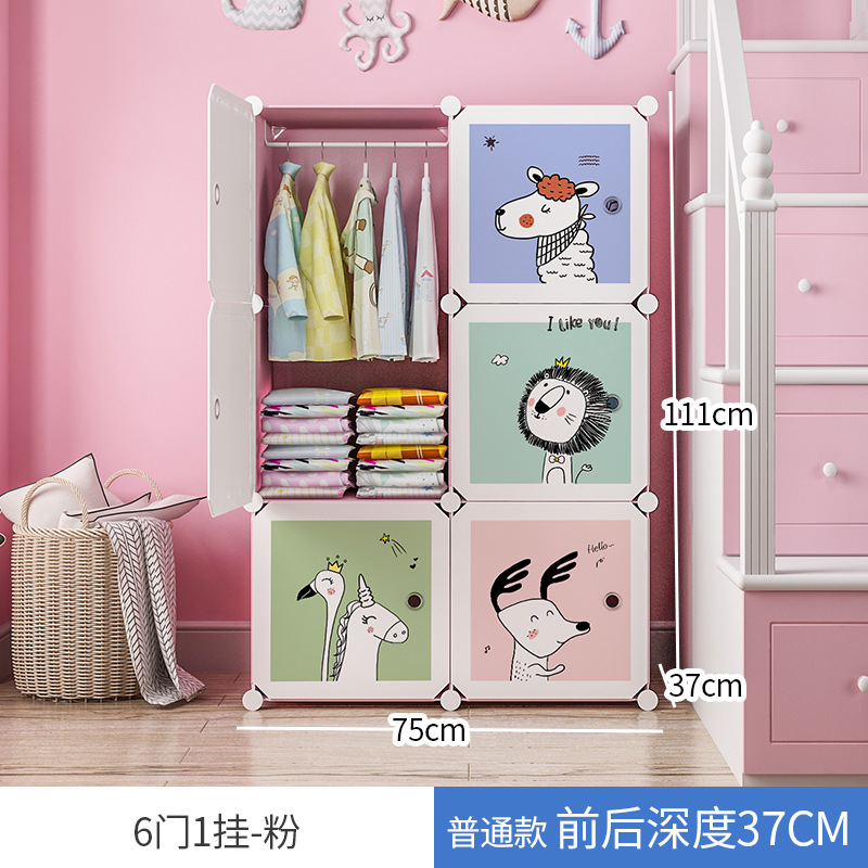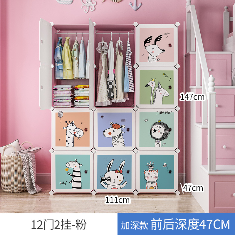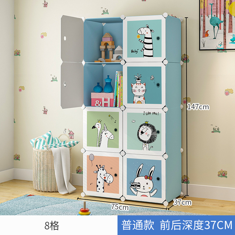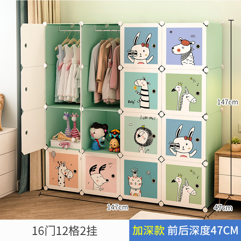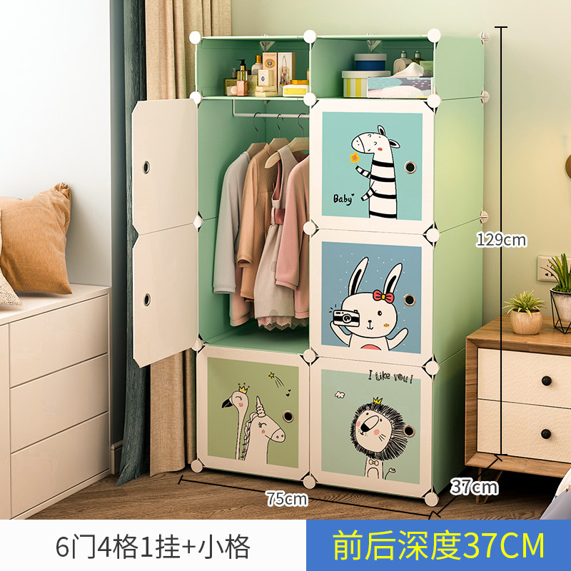 만화 동물 어린이 간단한 플라스틱 의류 보관 옷장 가정용 침실 보관 캐비닛 사물함
