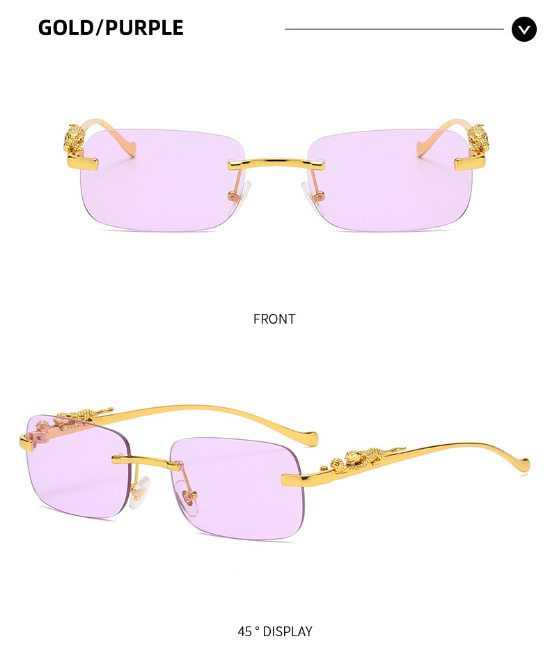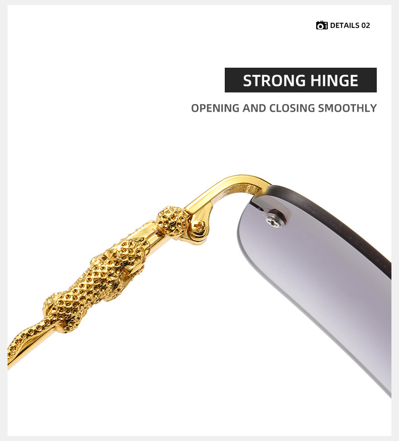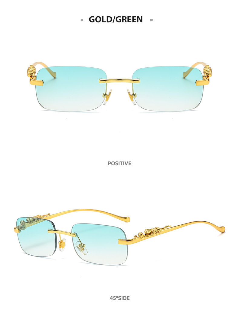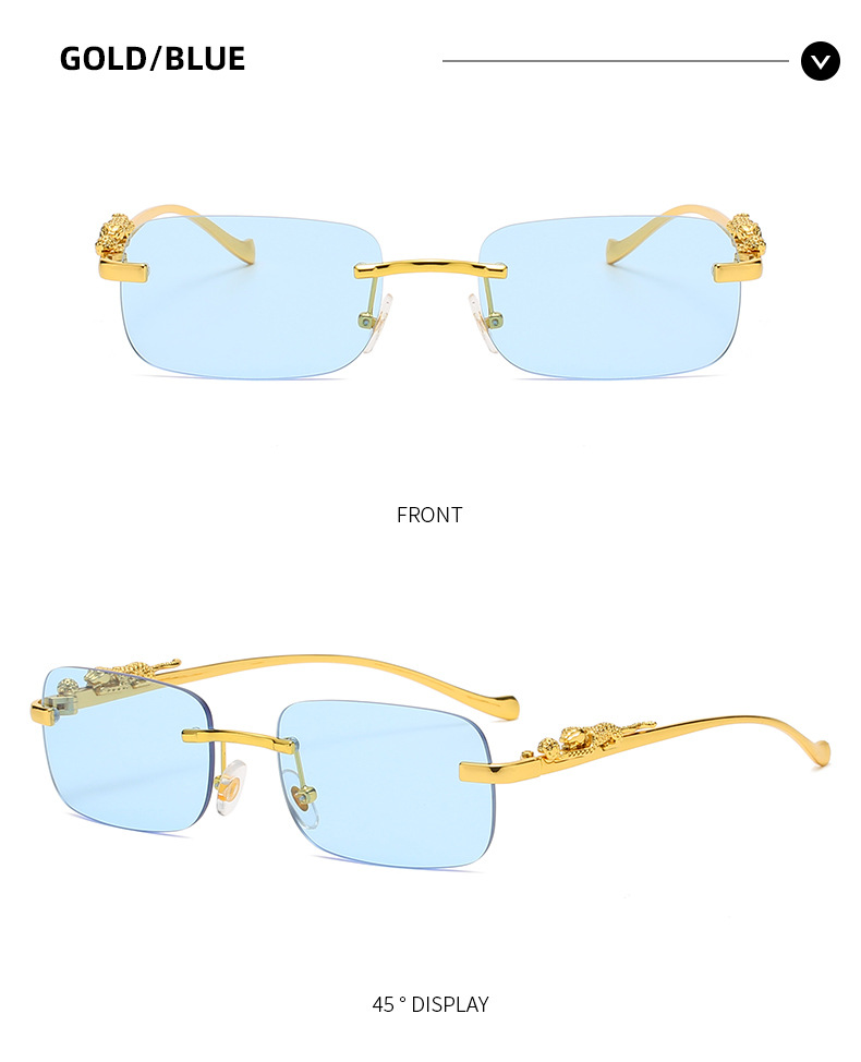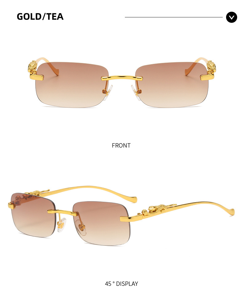 치타 장식 프레임리스 스퀘어 선글라스 색상 남성과 여성 복고풍 표범 머리 금속 선글라스 크로스 보더 안경 2572