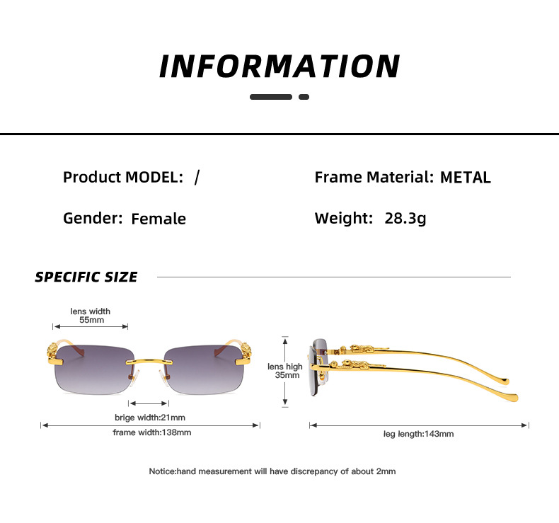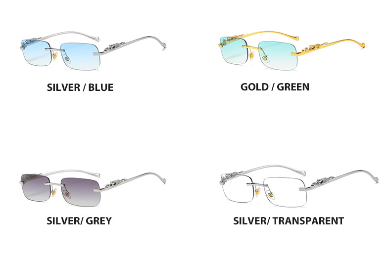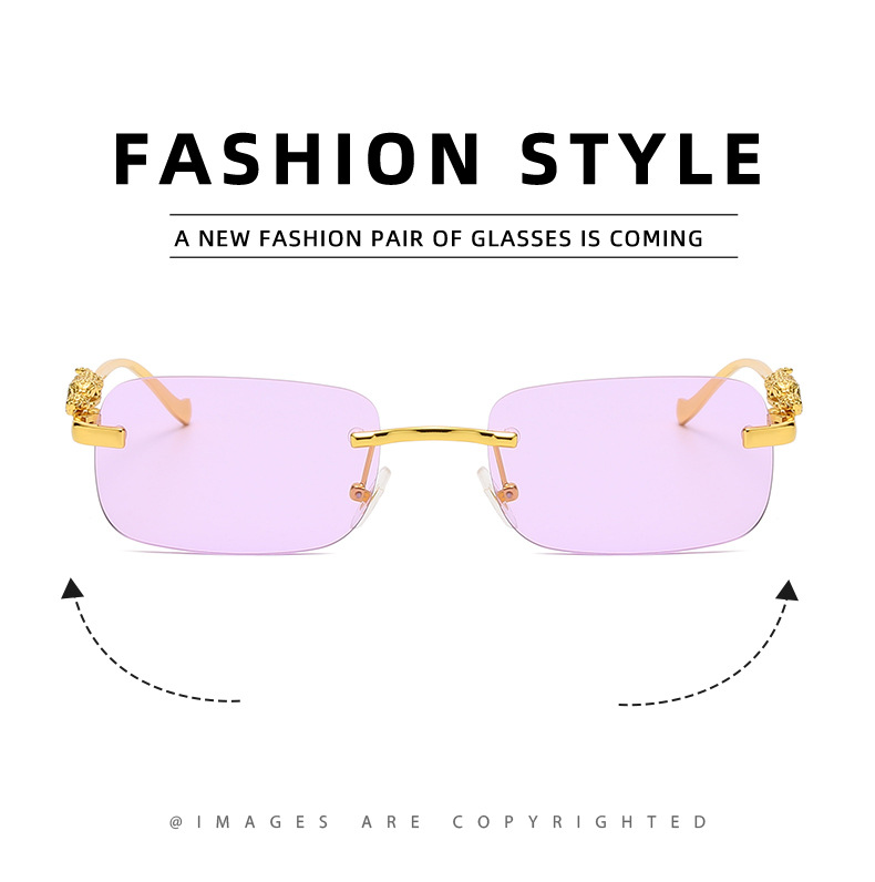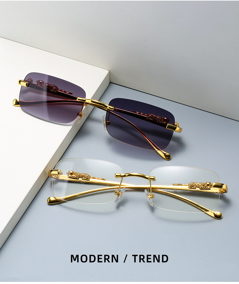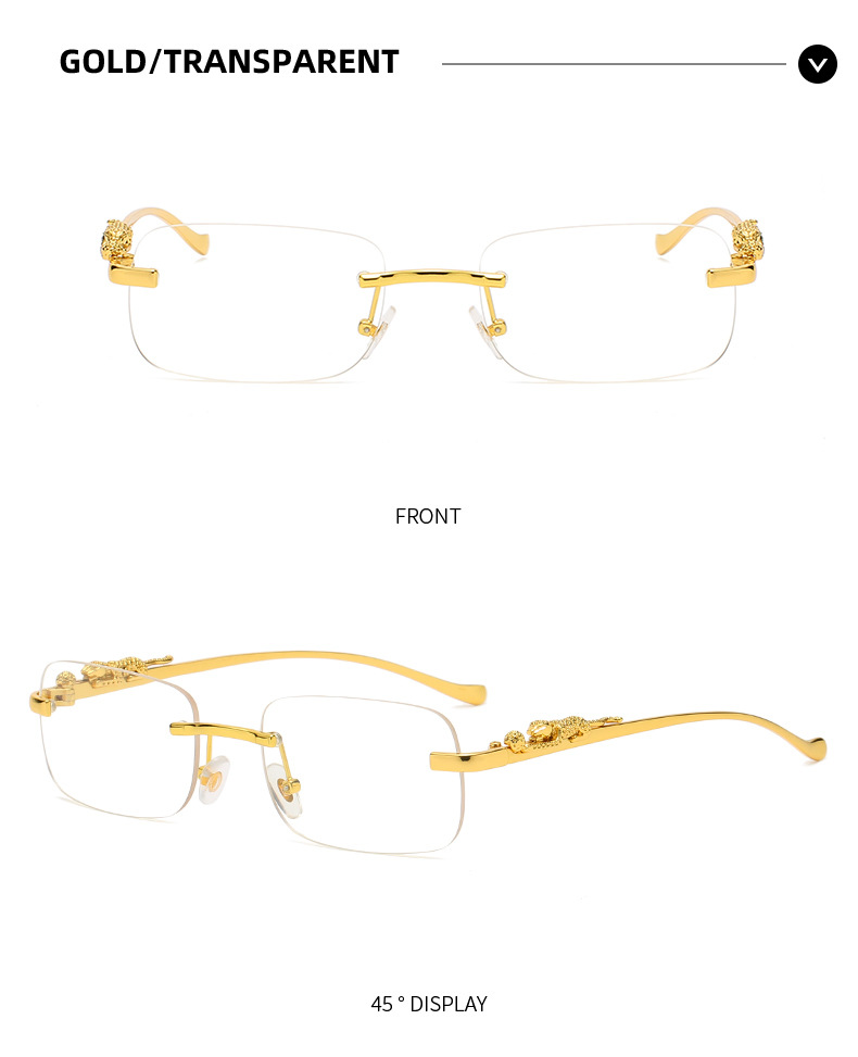 치타 장식 프레임리스 스퀘어 선글라스 색상 남성과 여성 복고풍 표범 머리 금속 선글라스 크로스 보더 안경 2572