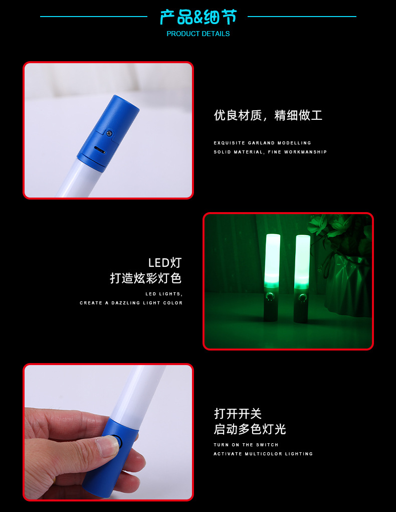 재고 도매 컬러 램프 LED 글로우 스틱 휴일 장식 조명 활동은 소품 제조 업체 직접 공급을 지원해야합니다