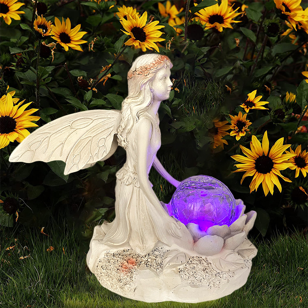 독립형 꽃 요정 레진 장식품 야외 정원 천사 소녀 조각 태양광 발광 장식 소품스토어 가기