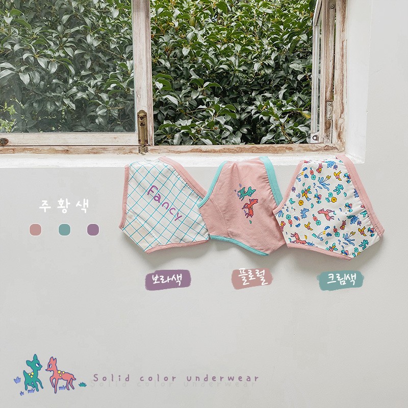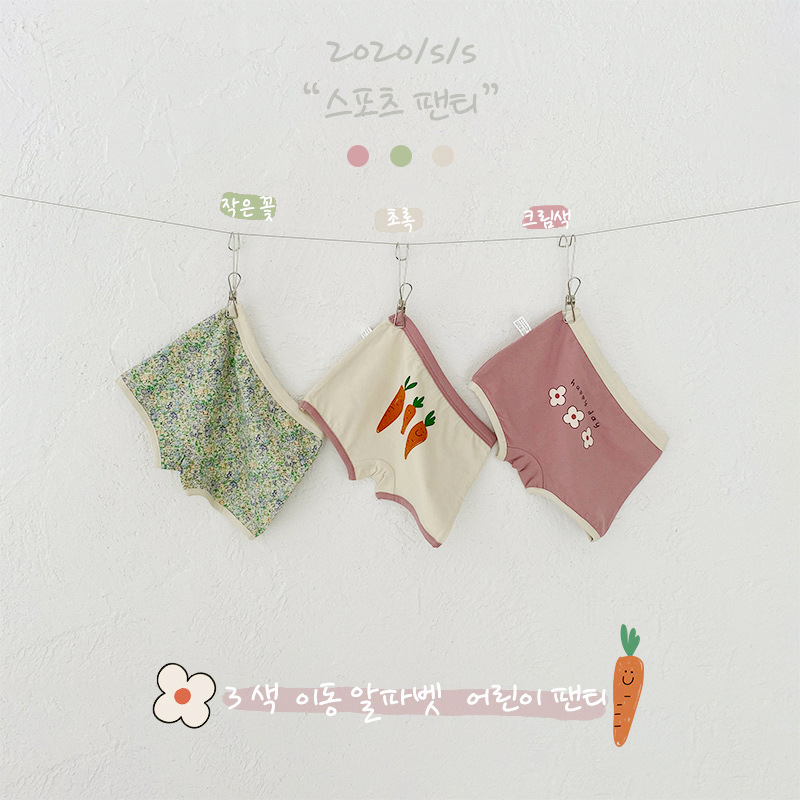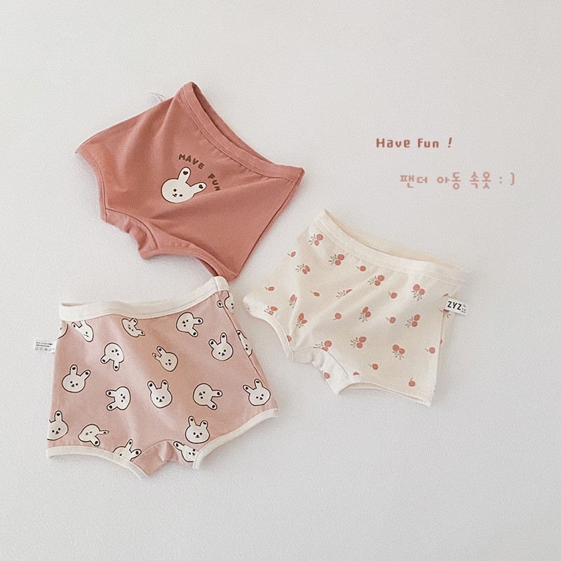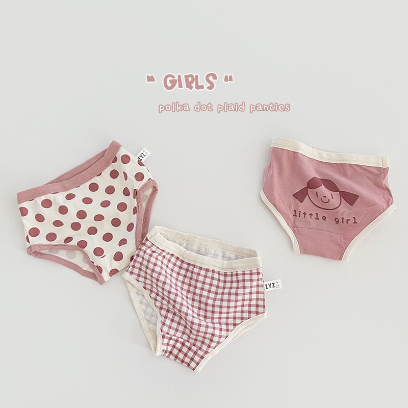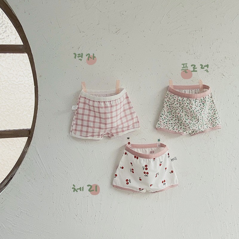 N070 어린이 속옷 만화 곰 격자 무늬 소녀 면 복서 팬티 클립 PP 아기 속옷 여자