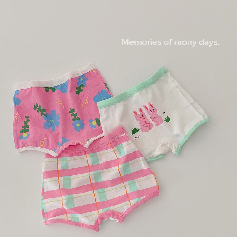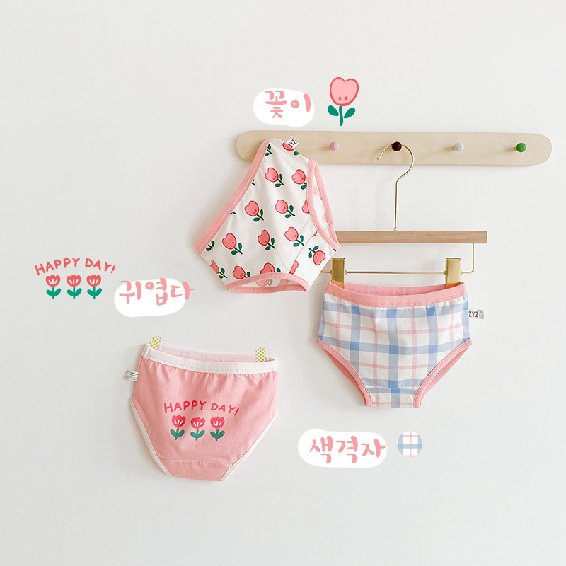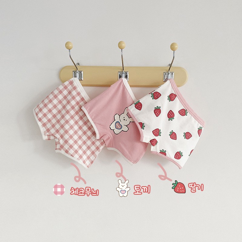 N070 어린이 속옷 만화 곰 격자 무늬 소녀 면 복서 팬티 클립 PP 아기 속옷 여자스토어 가기