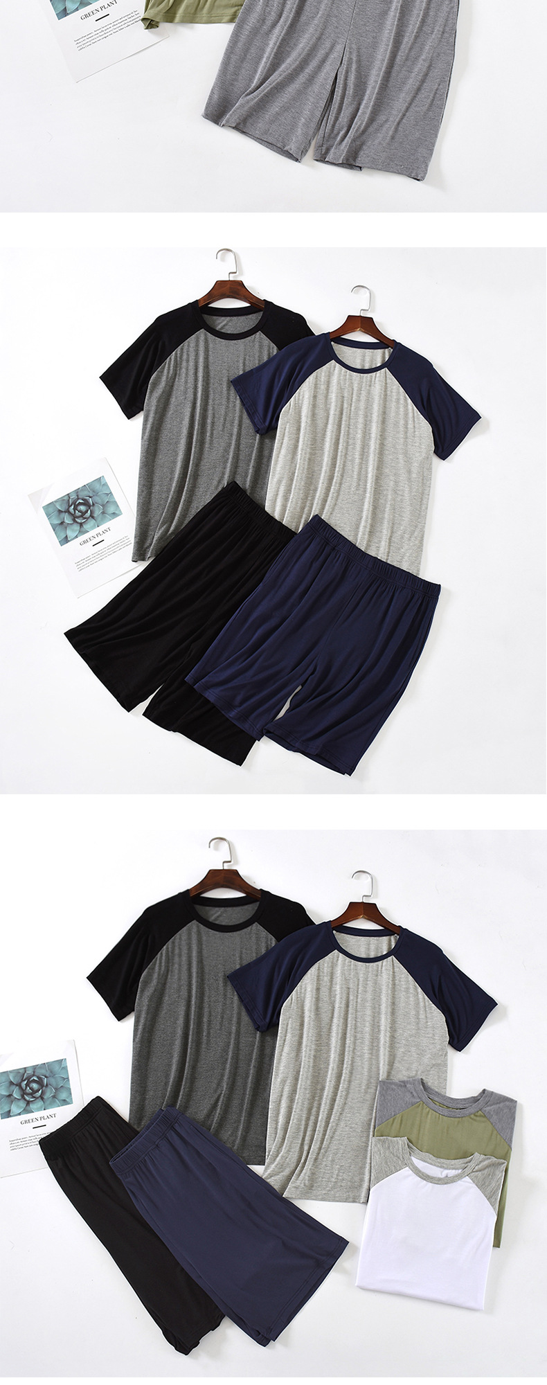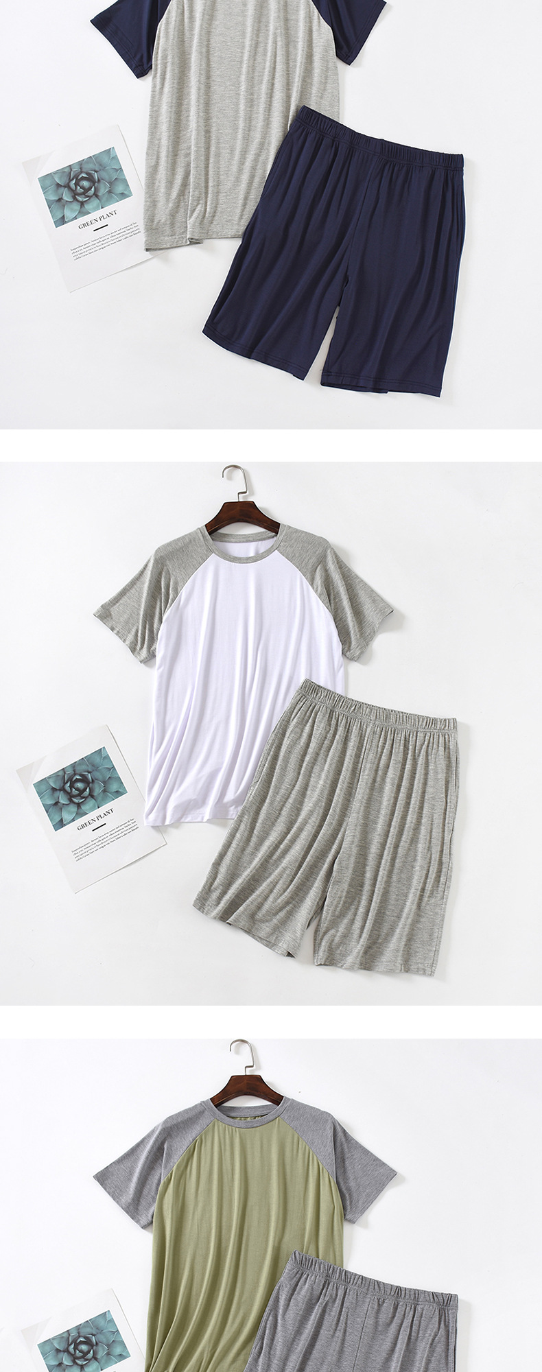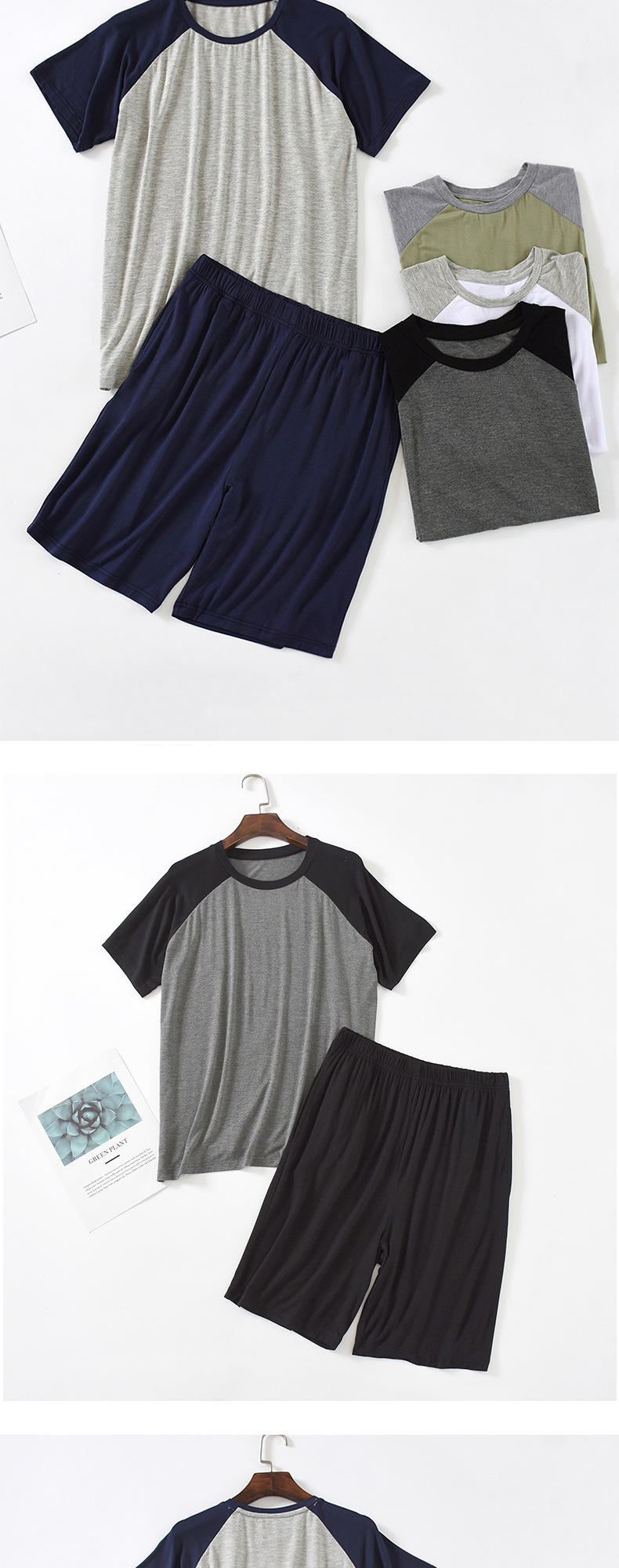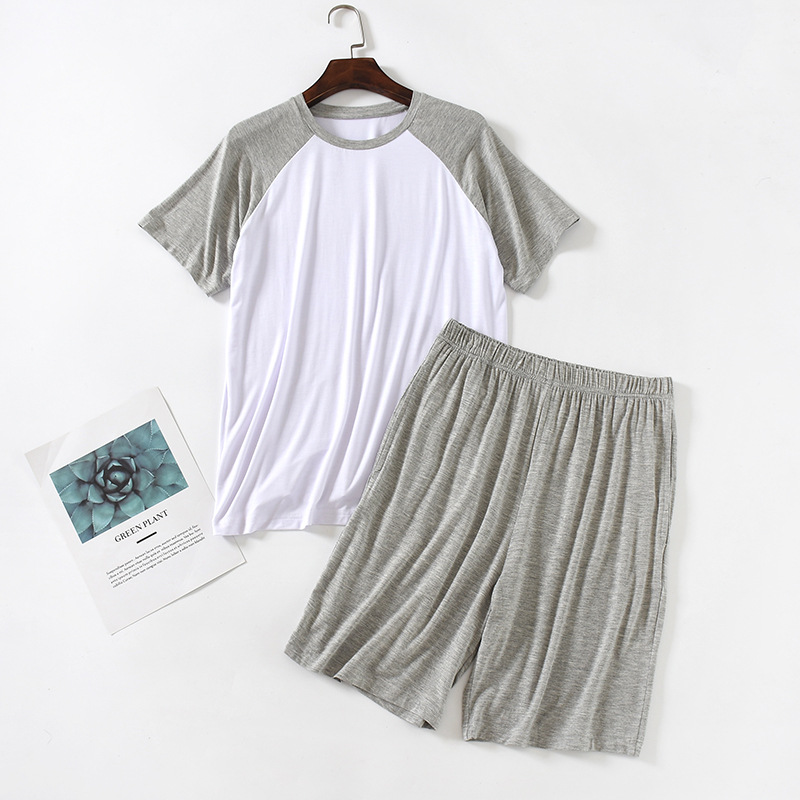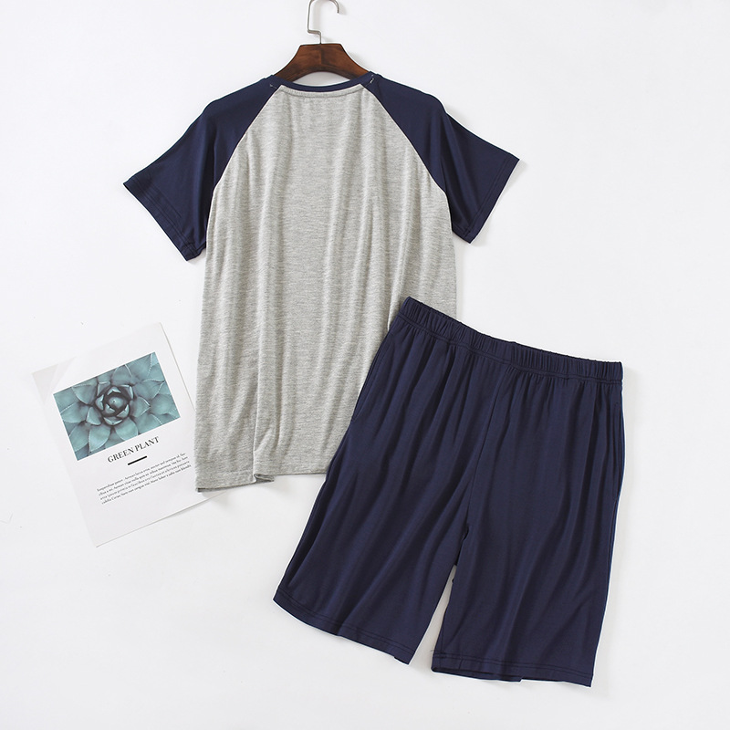 모달 잠옷 남성 세트 반팔 반바지 얇은 대비색 여름 루즈핏 대형 투피스 통기성 시원함스토어 가기