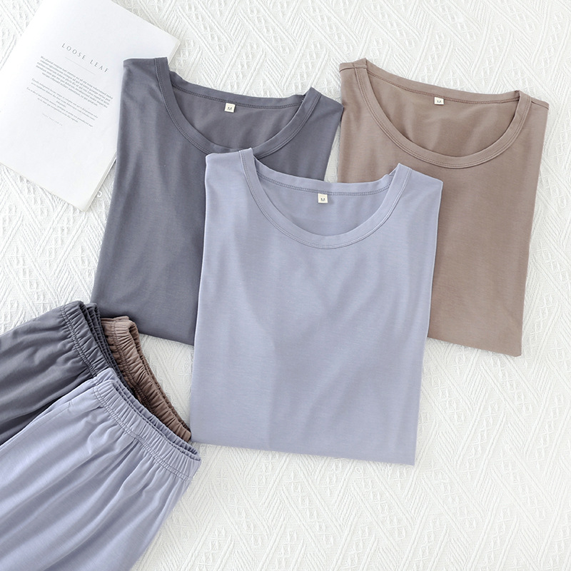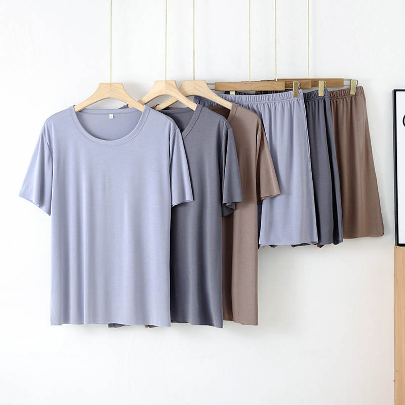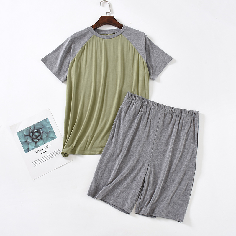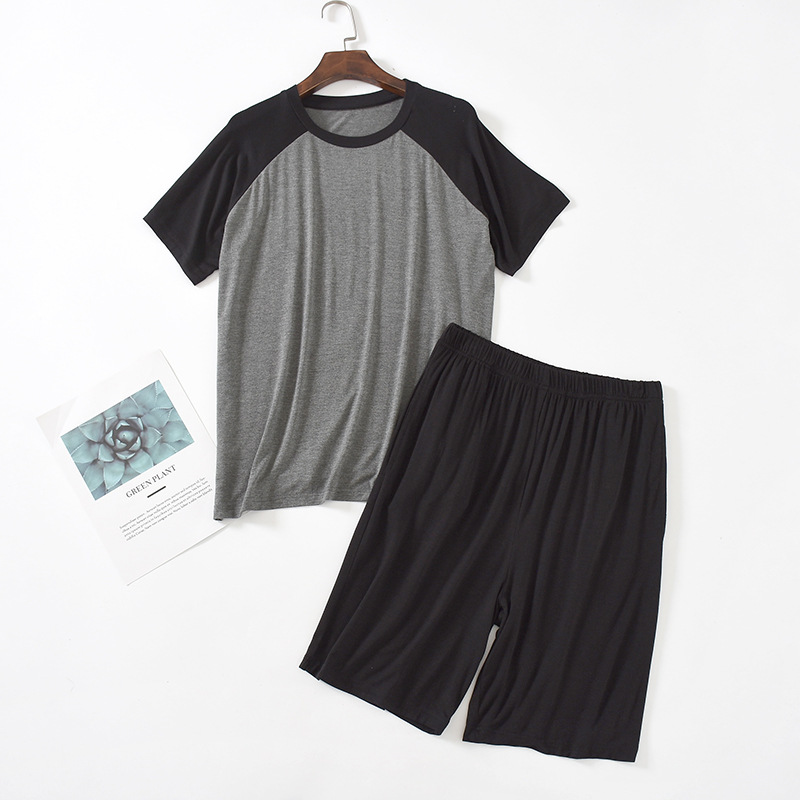 모달 잠옷 남성 세트 반팔 반바지 얇은 대비색 여름 루즈핏 대형 투피스 통기성 시원함