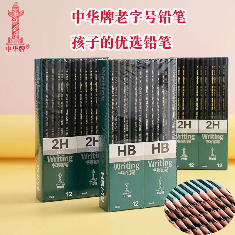 상하이 Zhonghua 브랜드 6008-hb 연필 2H 시험을위한 유치원 어린이 및 학생 필기 연필 교정스토어 가기