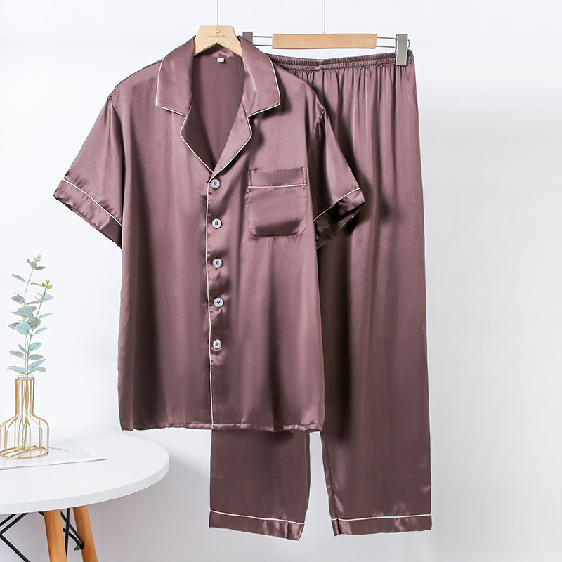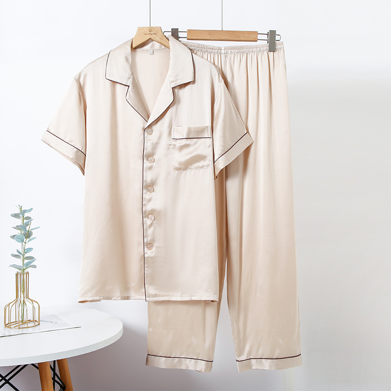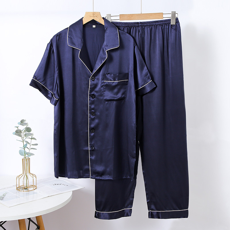 좋은 뽕나무 가장자리 여름 남자 실크 홈웨어 세트 반팔 바지 속옷 뽕나무 실크 파자마 2245