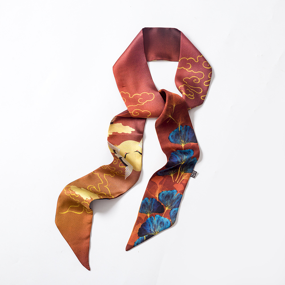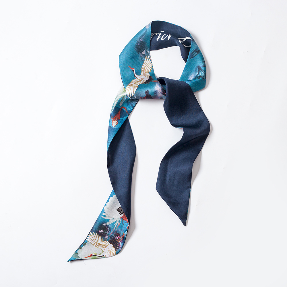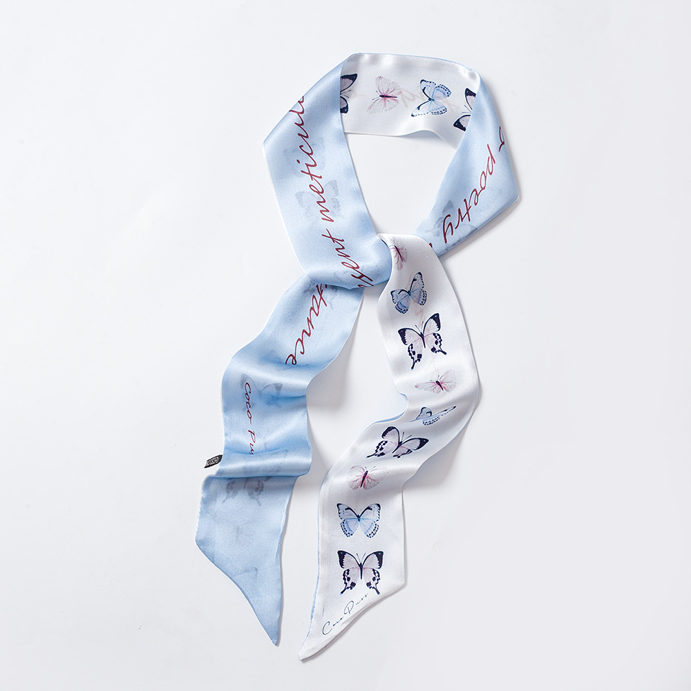 100% 뽕나무 실크 실크 스카프 작은 긴 여성용 넥타이 가방 헤어 스트랩 얇은 좁은 넥타이 손잡이 스카프 빈티지 긴 리본