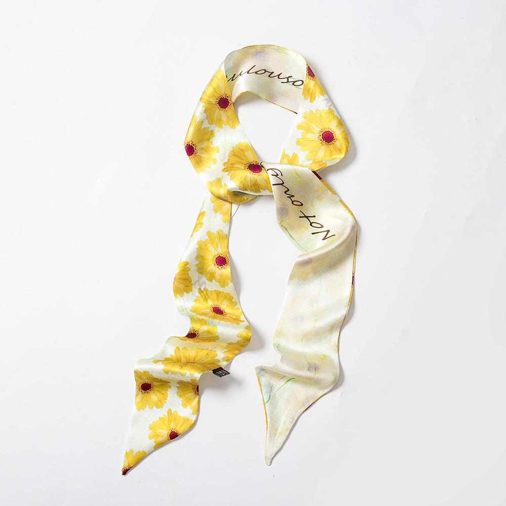 100% 뽕나무 실크 실크 스카프 작은 긴 여성용 넥타이 가방 헤어 스트랩 얇은 좁은 넥타이 손잡이 스카프 빈티지 긴 리본스토어 가기