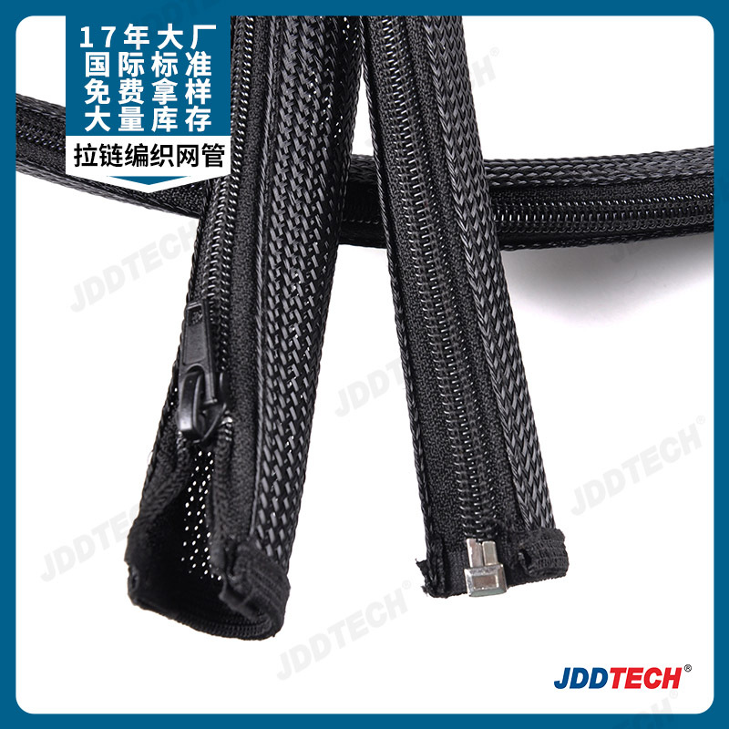 지퍼가 달린 직조 메쉬 튜브는 방염 및 방진 기능을 제공합니다. 컴퓨터 와이어 정리 및 와이어 튜브 개방형 지퍼 보호 튜브