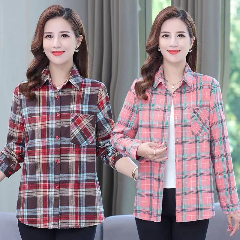 2026년 봄 인기상품 중노년층용 기모 체크 셔츠, 루즈핏 캐주얼 라펠 긴팔 카디건 셔츠 도매스토어 가기
