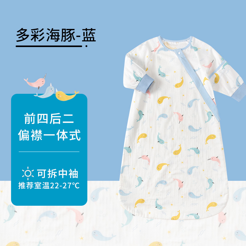 가을과 겨울 아기 침낭 어린이 면화 거즈 탈착식 반 소매 봉투 침낭 아기 앞 4 등 2 개 안티 킥 이불