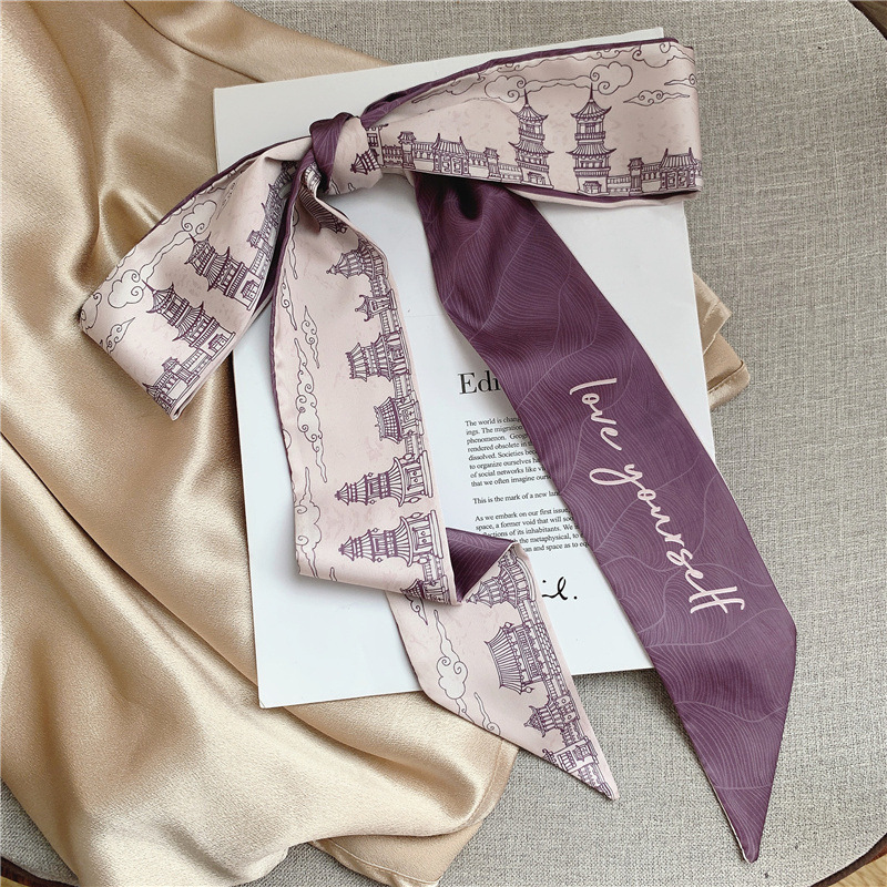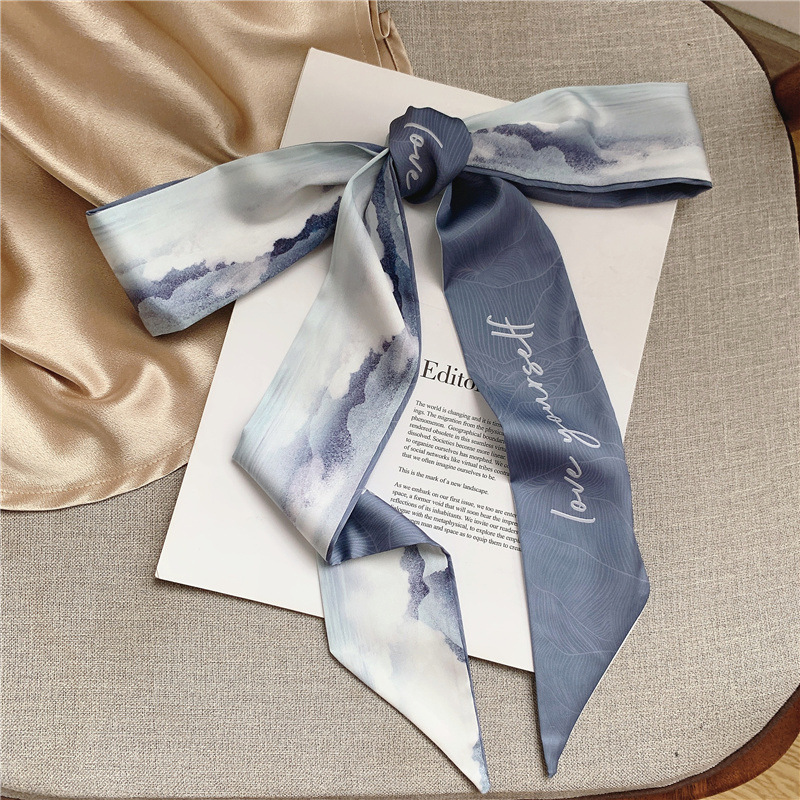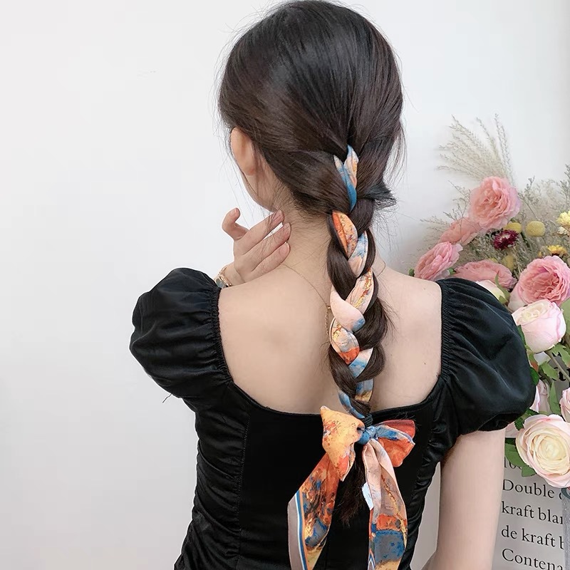 빈티지 프랑스 스타일 보우 헤어 스카프 헤어 벨트 머리 스카프가있는 여성용 넥타이 스카프 긴 리본 유화 모든 매치 봄과 가을