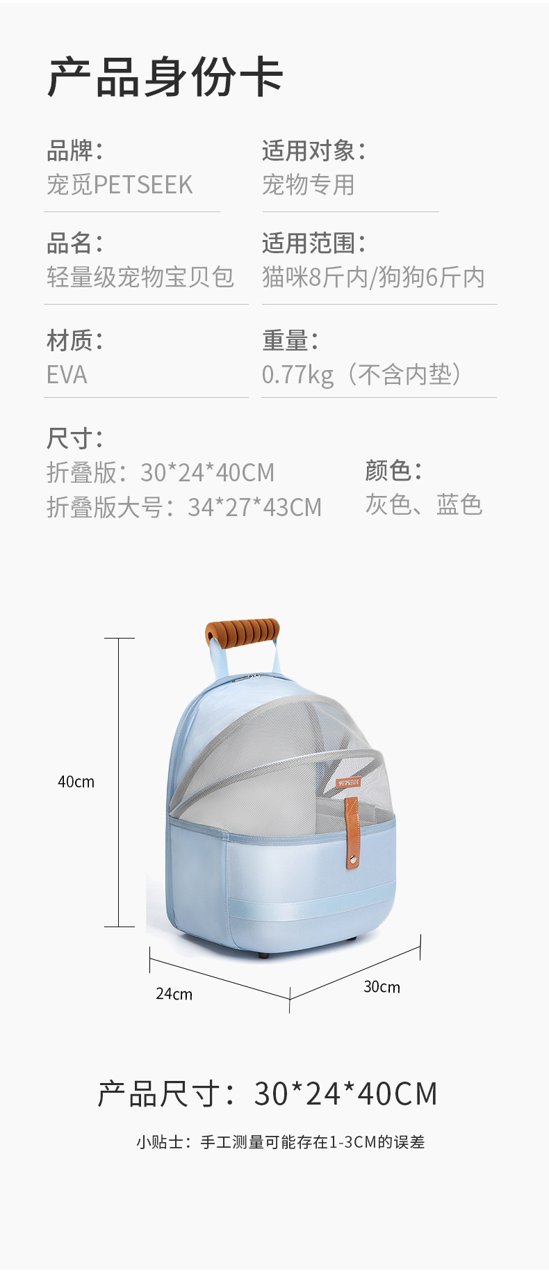 • 콜드 스카이 블루 접이식 버전 소형 [고양이 4kg / 개 3kg ]