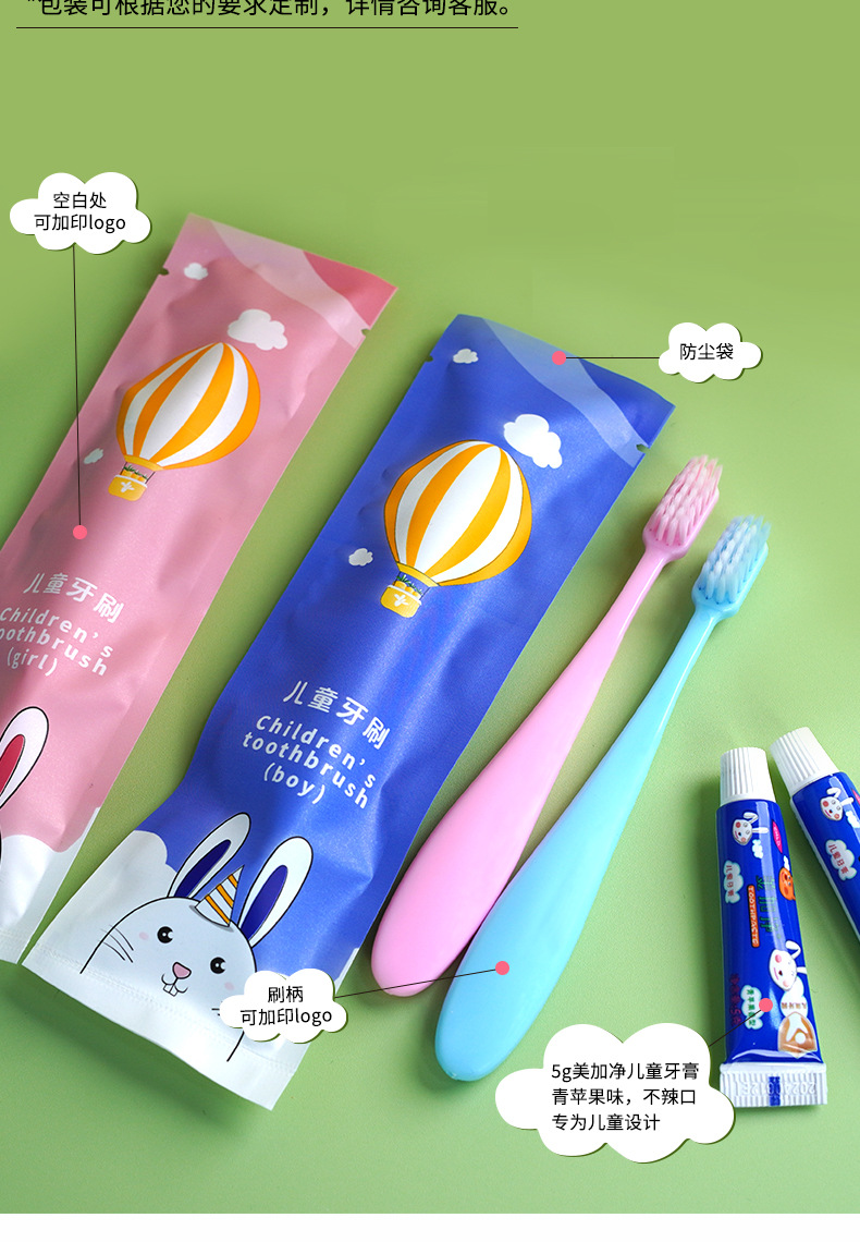 호텔 어린이 칫솔 블루 핑크 칫솔 세트 강모 부드러운 만화 귀여운 토끼 일회용 치과 용품