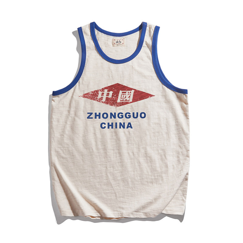 230g 슬러브 면 빈티지 프린트 레드 중국 스포츠 조끼 여름 80 년대 전국 패션 향수 민소매 조끼 남자