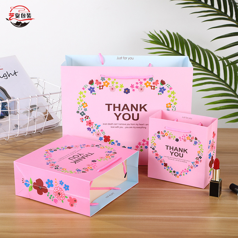 새로운 유니버설 선물 가방 핑크 꽃 소녀 의류 토트 백 고급 화장품 포장 종이 가방