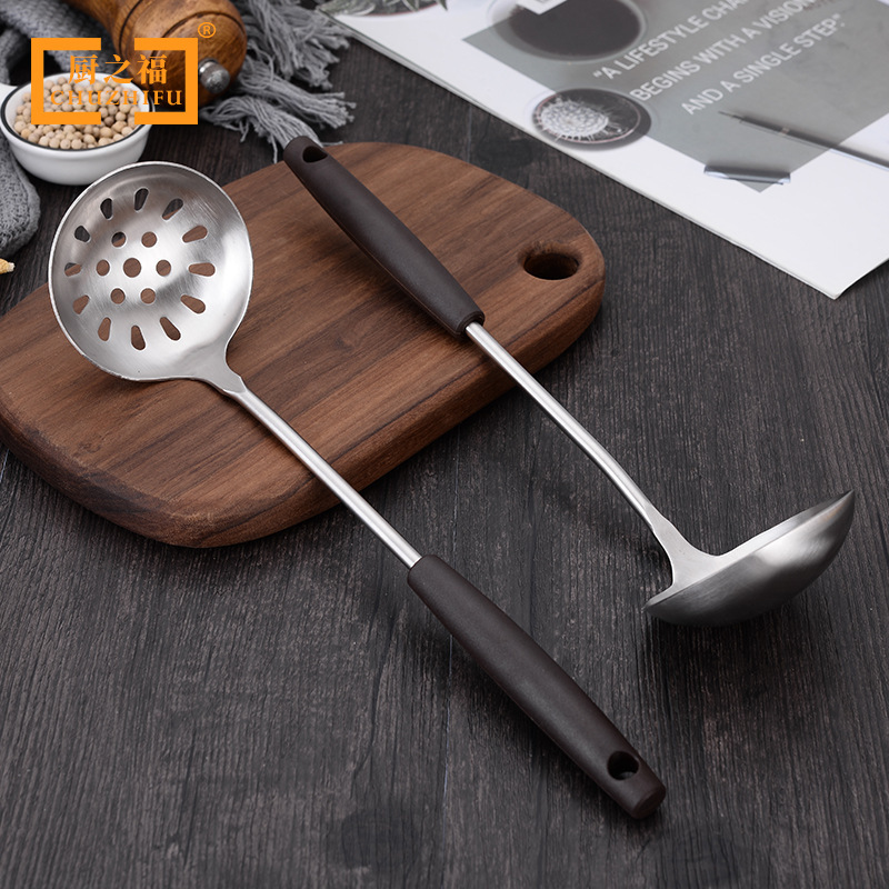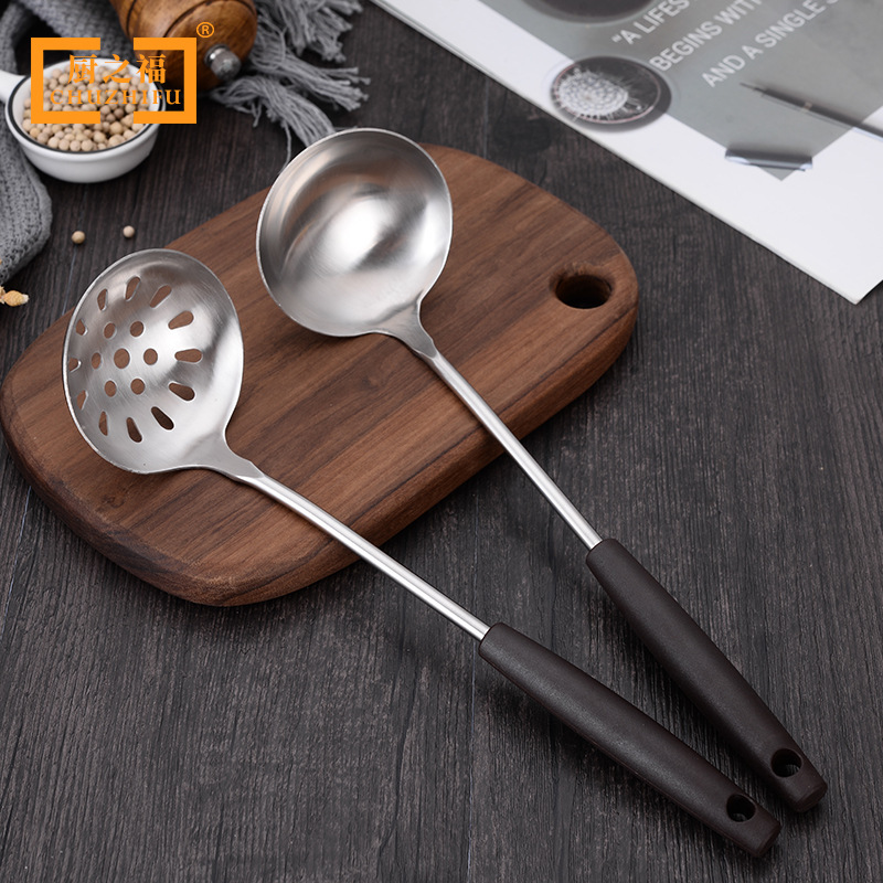 스테인레스 스틸 핫 팟 콜더 솔리드 미끄럼 방지 나무 손잡이 수프 수프 수프 누설 주방 가제트 핫 팟 콜더 수프