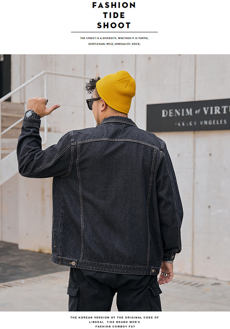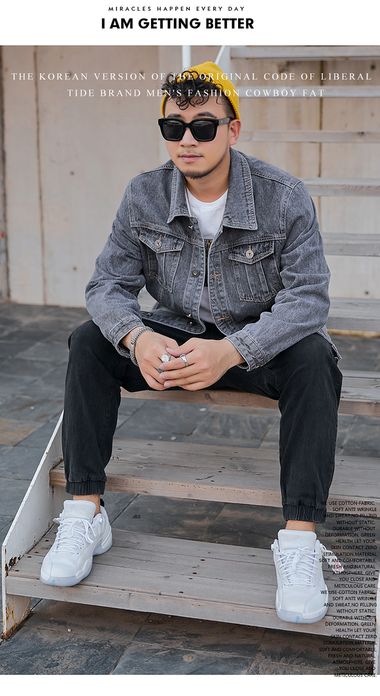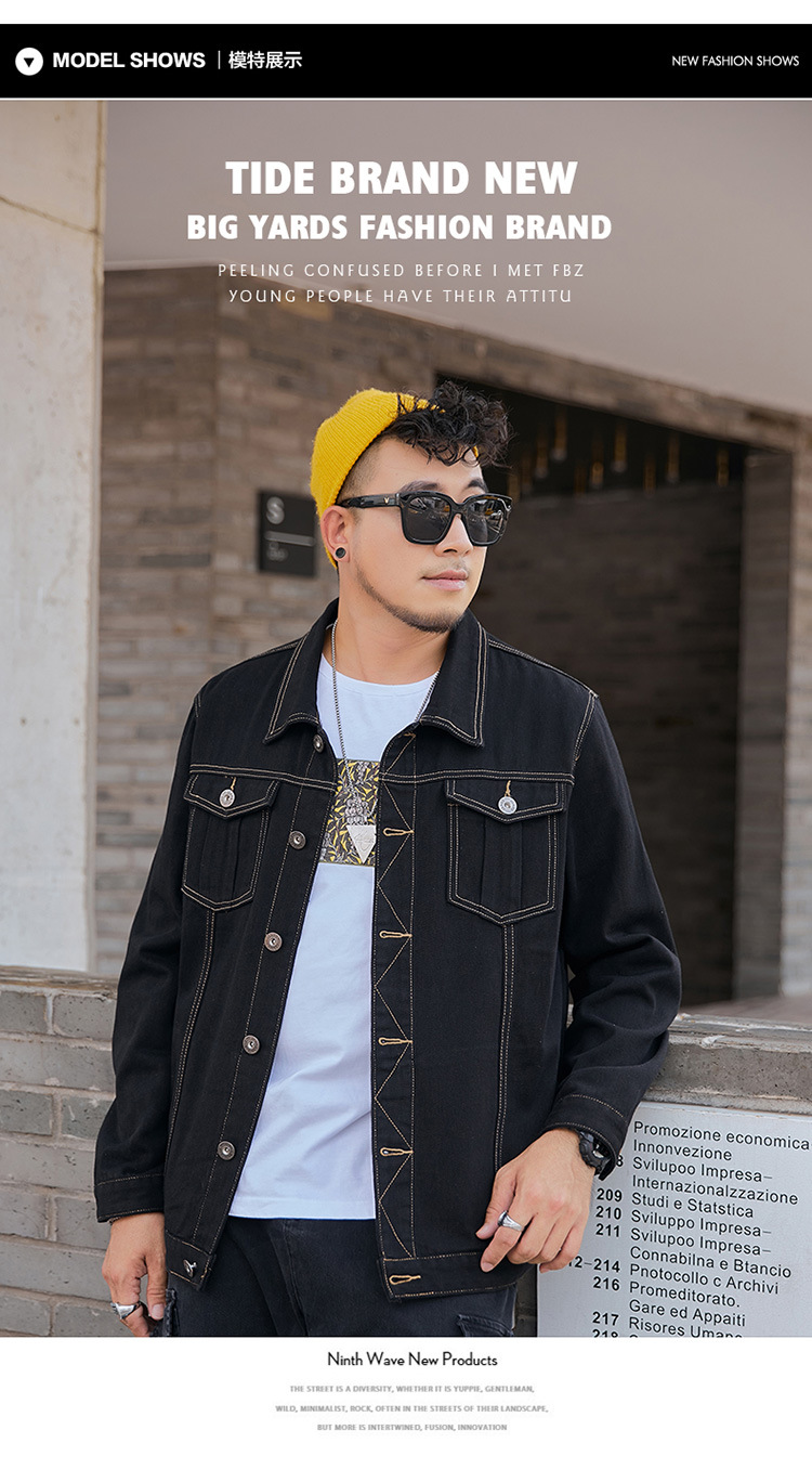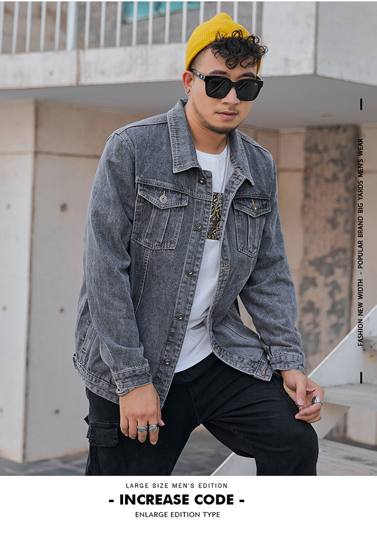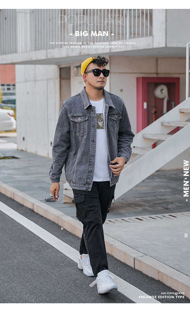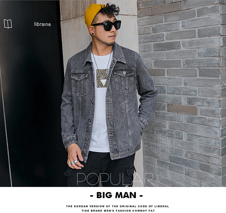 유행 한국식 플러스 사이즈 남자의 데님 재킷 뚱뚱한 플러스 사이즈 데님 재킷 남자의 유행 통통한 셔츠 느슨한 통통한 탑스토어 가기