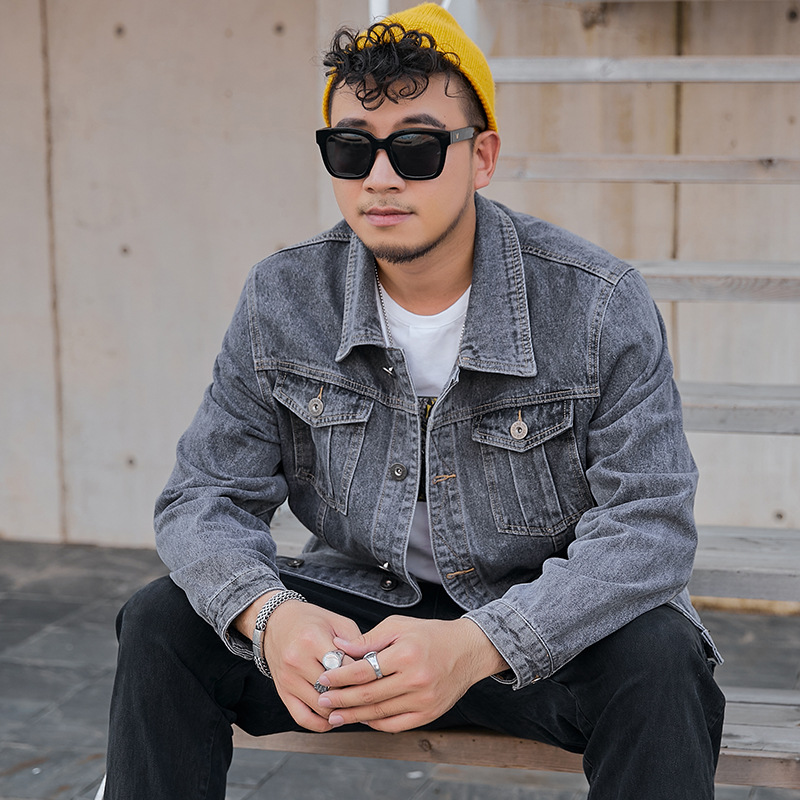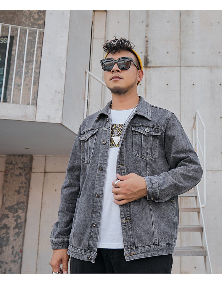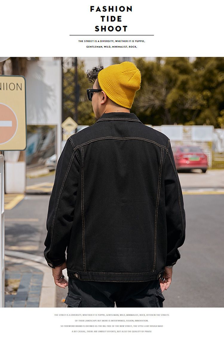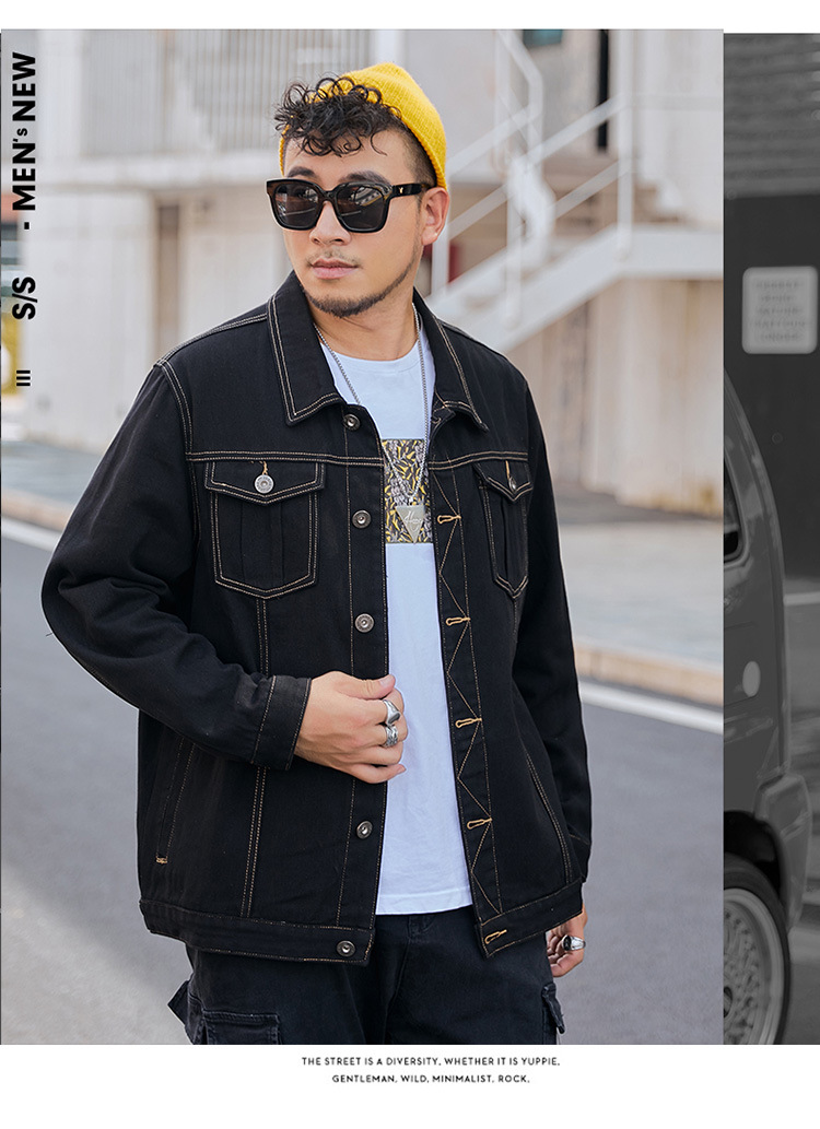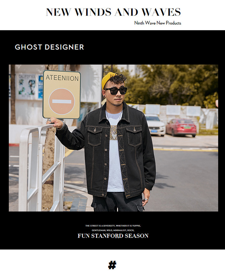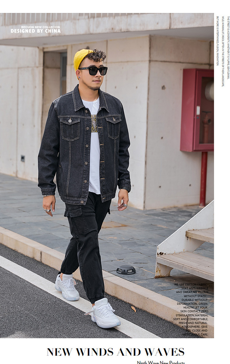 유행 한국식 플러스 사이즈 남자의 데님 재킷 뚱뚱한 플러스 사이즈 데님 재킷 남자의 유행 통통한 셔츠 느슨한 통통한 탑스토어 가기