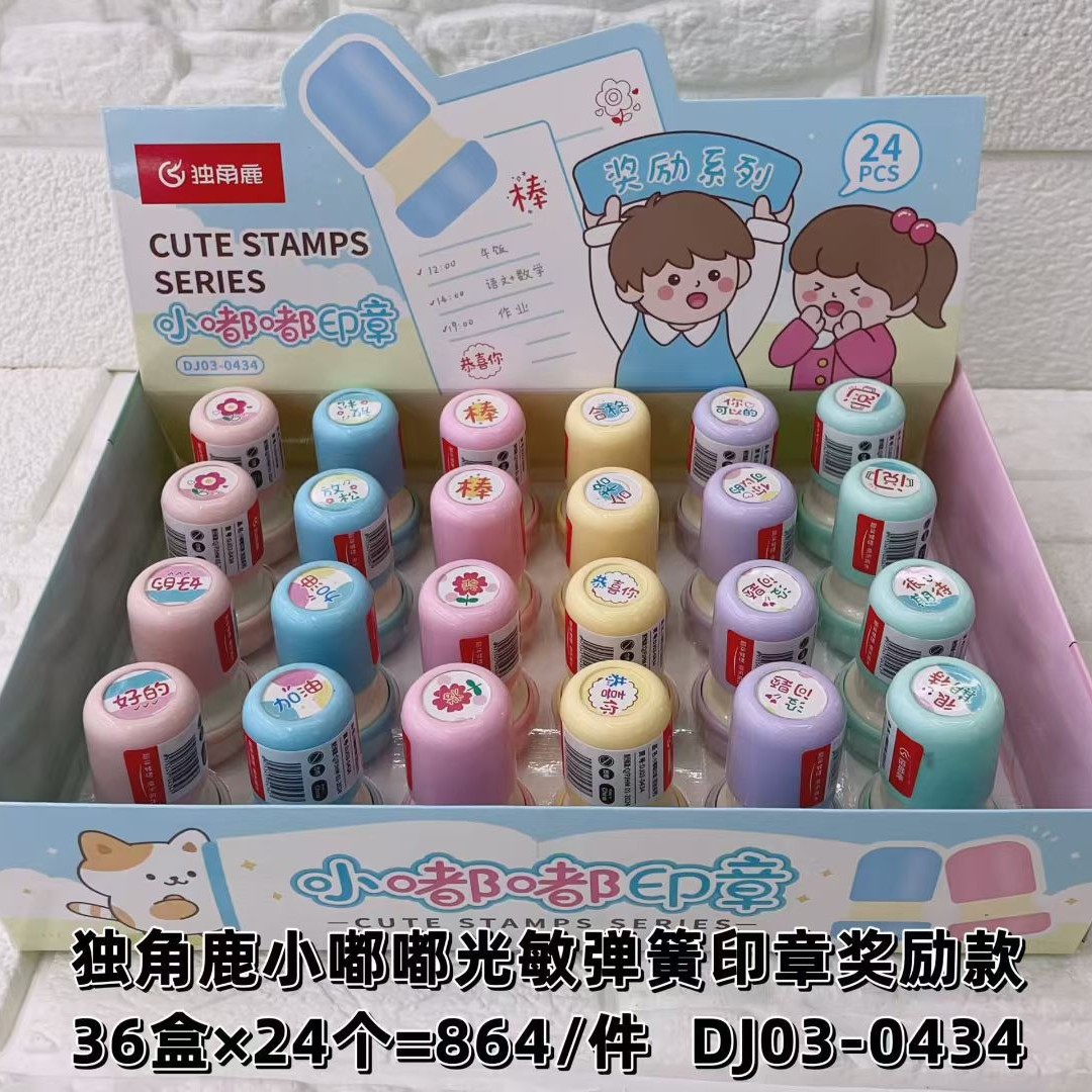 보상 물개 어린이 만화 스마일 유치원 교사가 교사의 의견을 봉인하고 숙제를 수정하도록 도장스토어 가기
