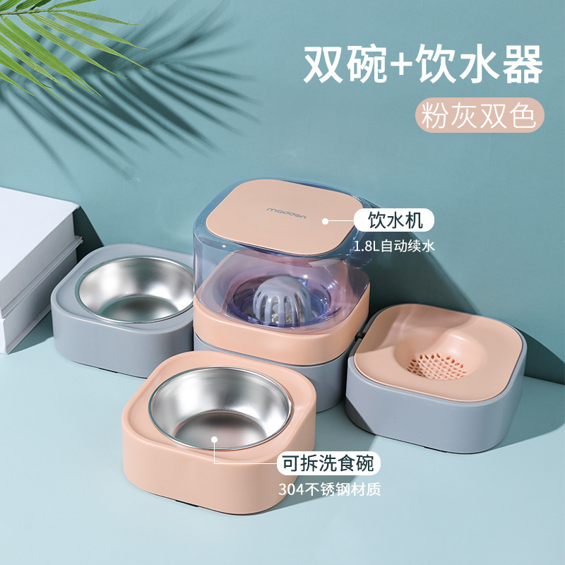 애완 동물 식수 일체형 피더 더블 볼 3 볼 고양이 자동 물 디스펜서 목 보호 고양이 먹이 그릇 애완 동물 음식 도구스토어 가기
