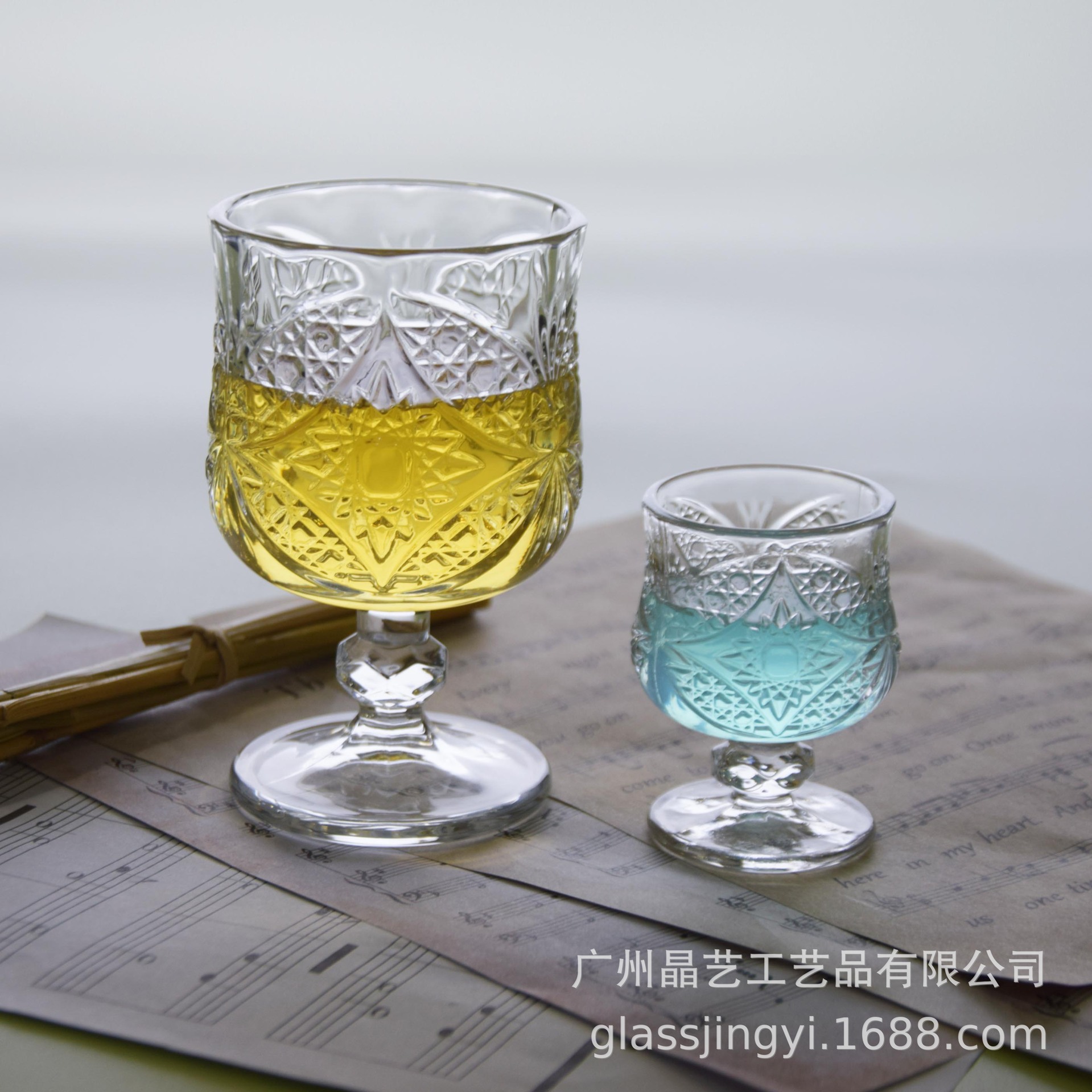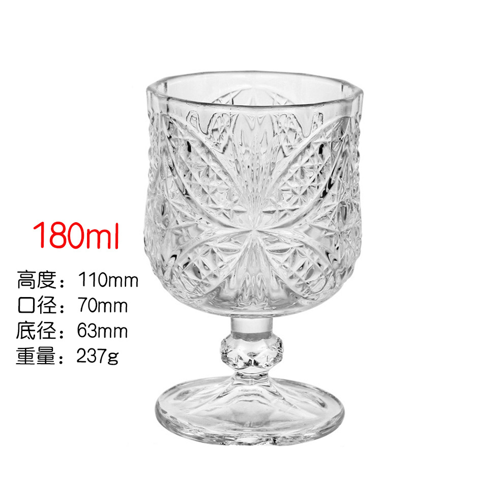 공장 재고 도매 복고풍 새겨진 유리 와인 잔 우아한 in 빛 고급 화이트 와인 잔 클래식 절묘한 작은 컵