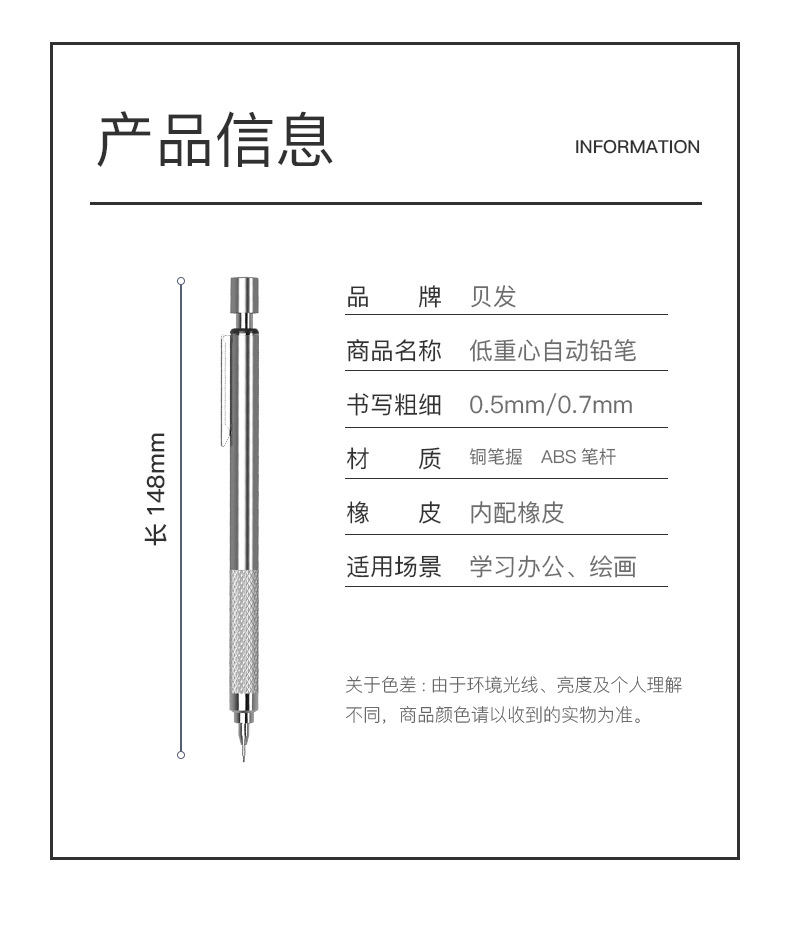 베이파 정품 0.7 저중심 금속 자동 연필 산업용 그림 만화 손그림 깨지지 않는 심 전문가용 연필스토어 가기