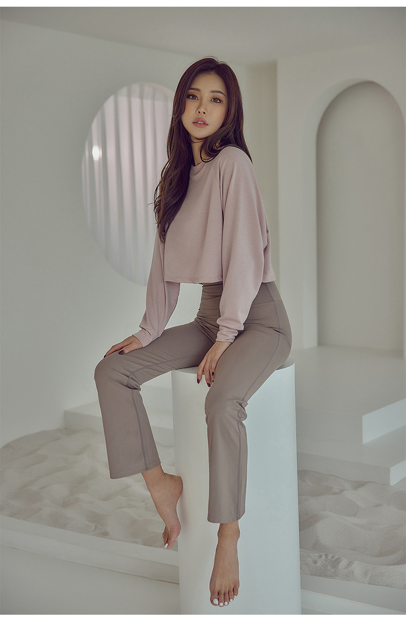 느슨한 플러스 사이즈 순면 요가 의류 긴팔 여성 캐주얼 야외 스포츠 탑 댄스 통기성 속건 의류 피트니스 의류