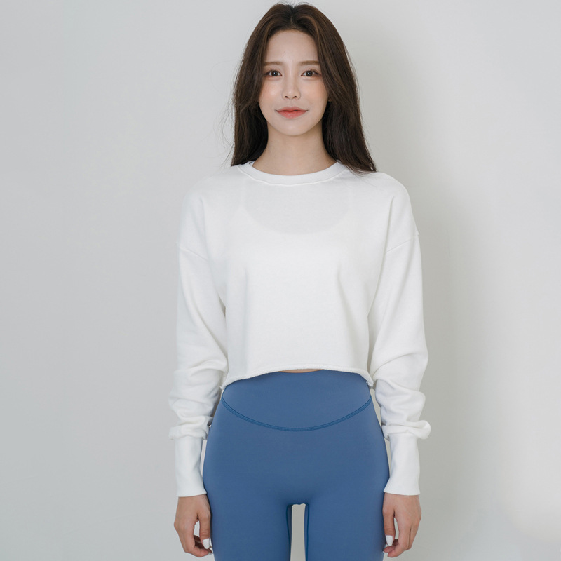 느슨한 플러스 사이즈 순면 요가 의류 긴팔 여성 캐주얼 야외 스포츠 탑 댄스 통기성 속건 의류 피트니스 의류스토어 가기