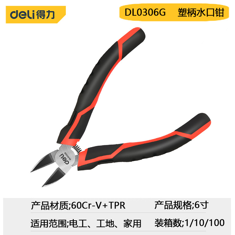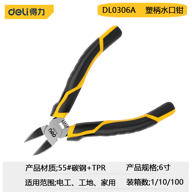 델리 도구 워터 입 펜치 바이어스 입 전자 트리밍 플라스틱 버 모델 수동 DL0305 06 A G스토어 가기