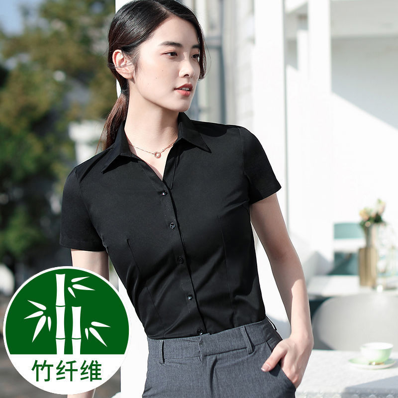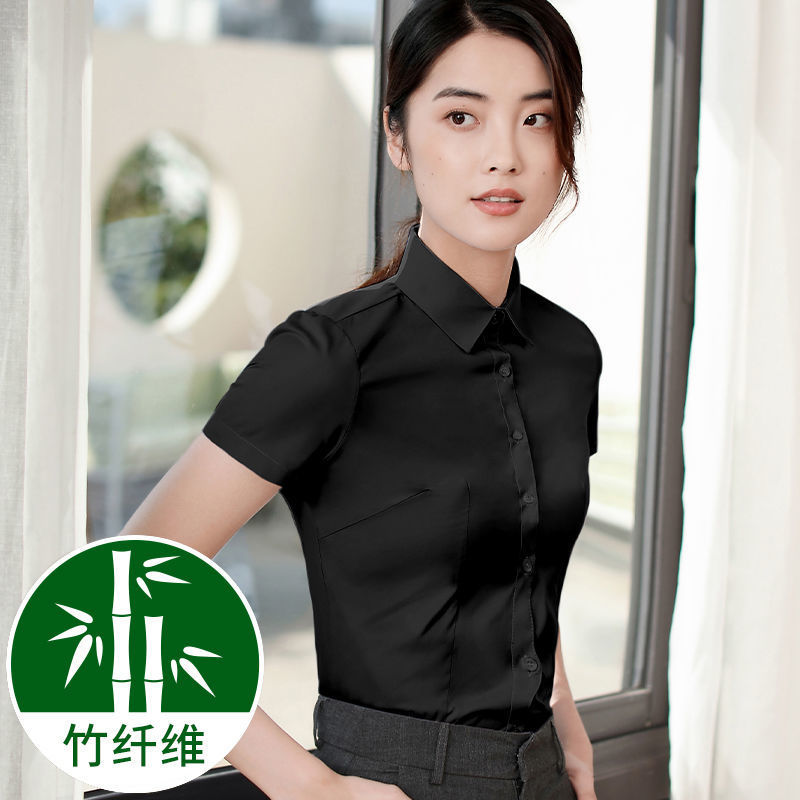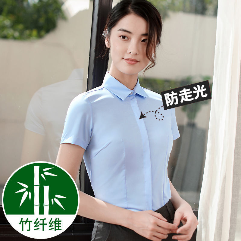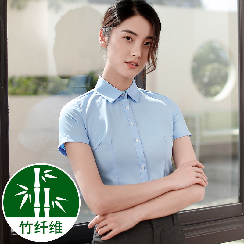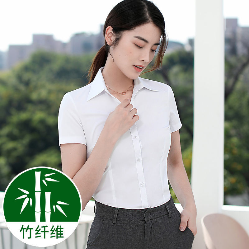 여성용 대나무 섬유 화이트 셔츠, 봄 가을 비즈니스 캐주얼 셔츠, 은행 및 전화 판매용 캐주얼 반팔 화이트 셔츠