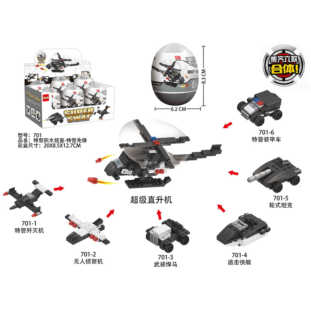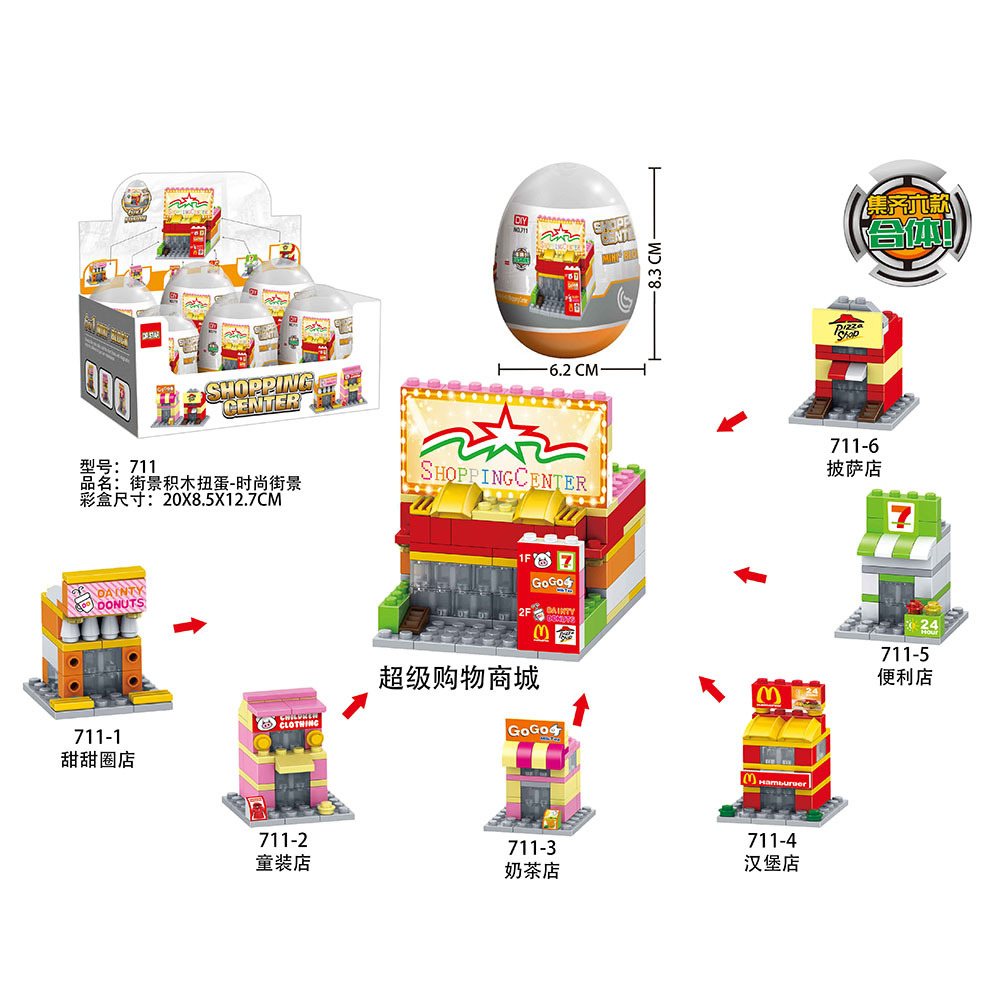 该系列扭蛋都是6个一套的,6个扭蛋装一个小盒子,每一款都可以拼成独立的造型,6个又可以组合成一个大的造型,扭蛋的尺寸高约8CM,是椭圆形的,产品质量非常好,希望喜欢的客人多多下单