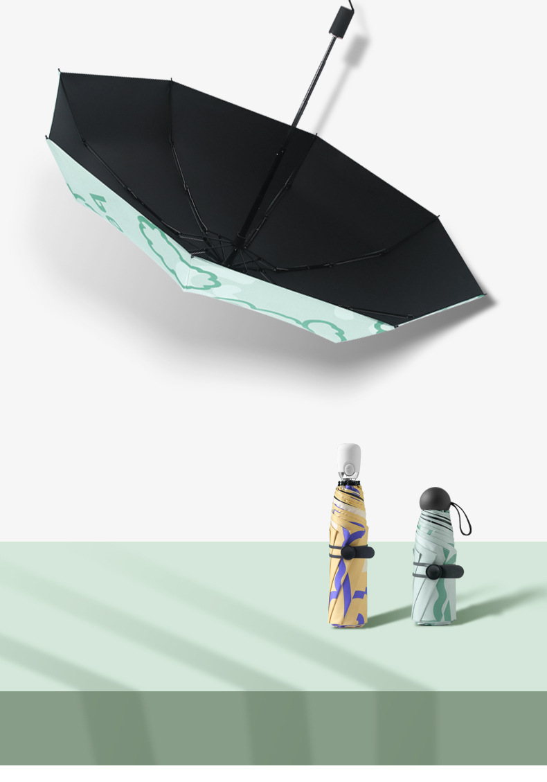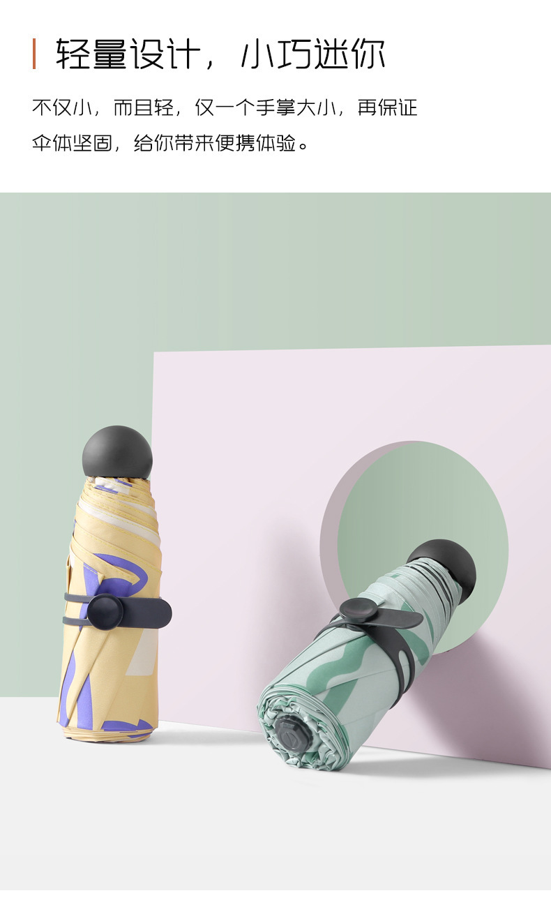자동 태양 보호 자외선 차단 여성용 햇빛 우산 5 중 소형 휴대용 접이식 이중 목적 엄지 캡슐스토어 가기