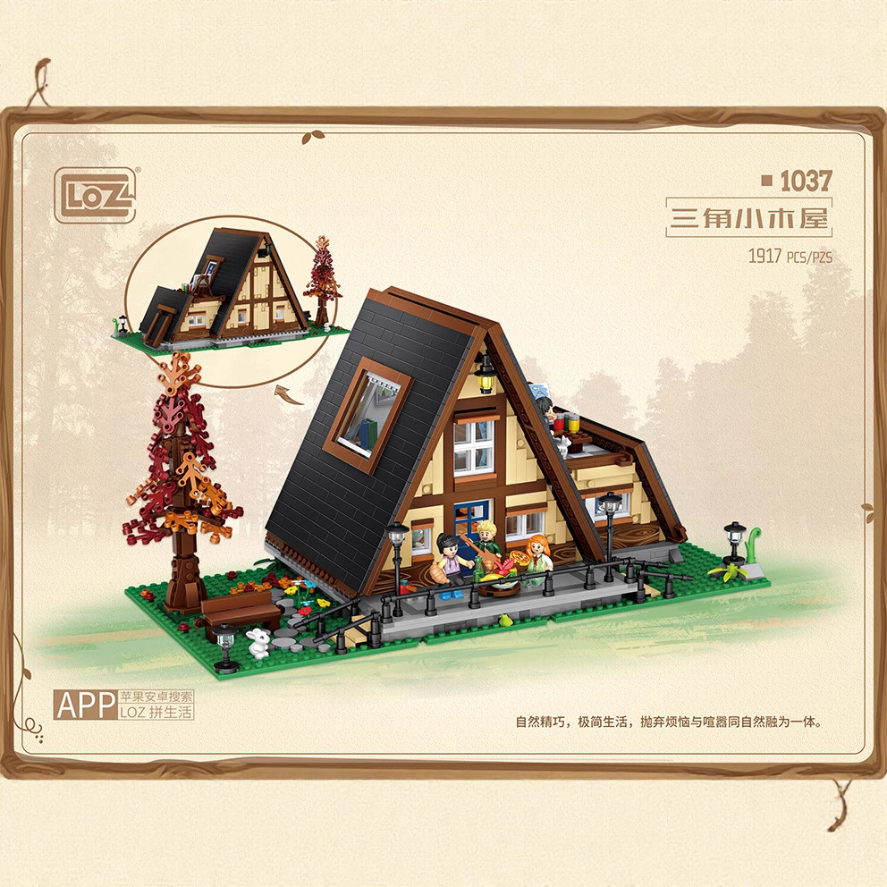 Loz Li Zhi 삼각형 캐빈 미니 소형 입자 수동 조립 난이도 스트리트 뷰 빌딩 블록 빌딩 모델 남성용스토어 가기