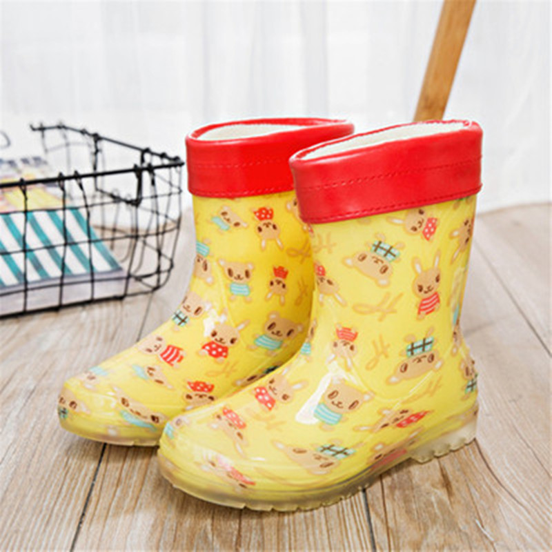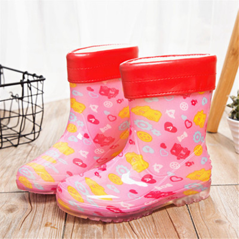 어린이 장화 소년과 소녀 만화 장화 아기 가벼운 물 장화 크기 어린이 고무 신발 학생 물 신발 따뜻한 커버 신발
