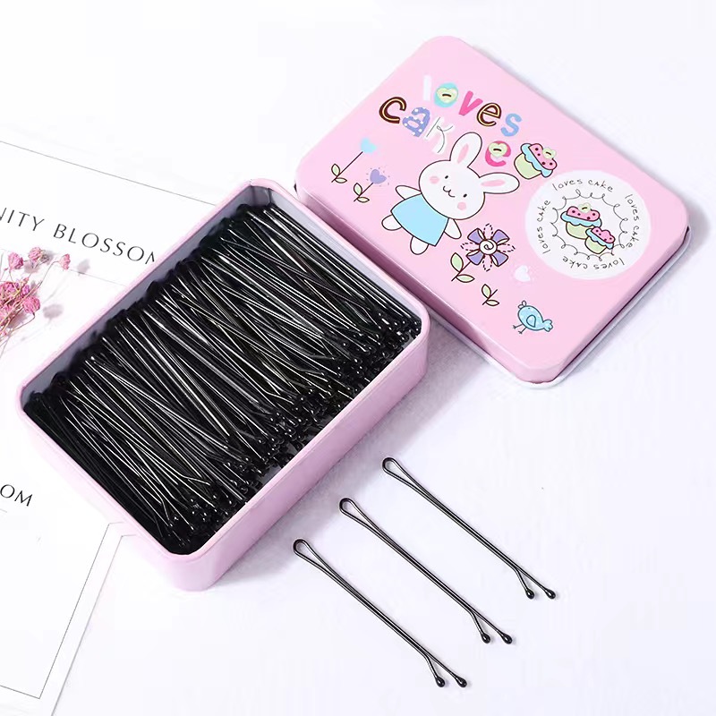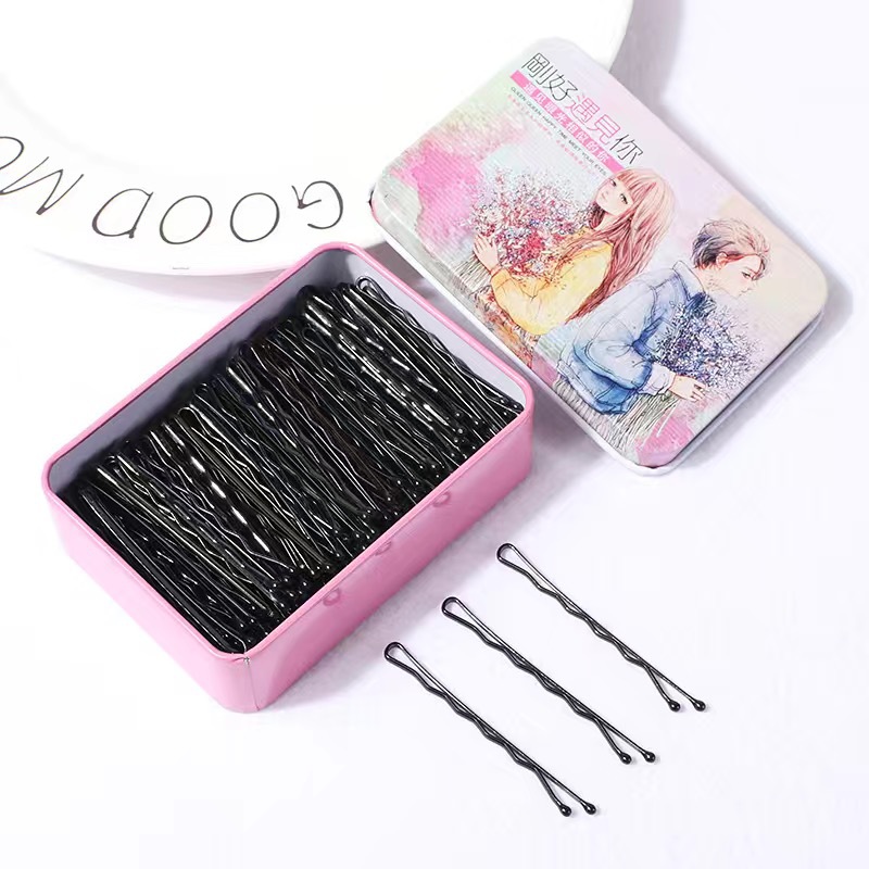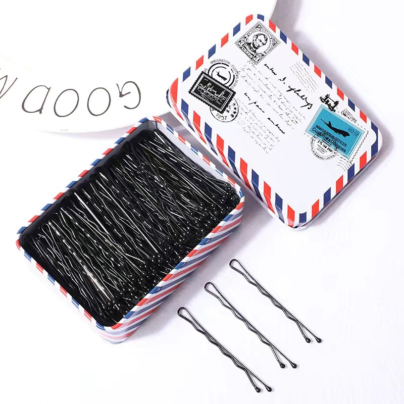 간단한 한 글자 클립 블랙 헤어 클립 선물 상자 머리핀 작은 클립 깨진 머리 장식 스틸 클립 사이드 클립 여성용 헤어 액세서리