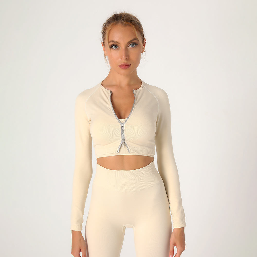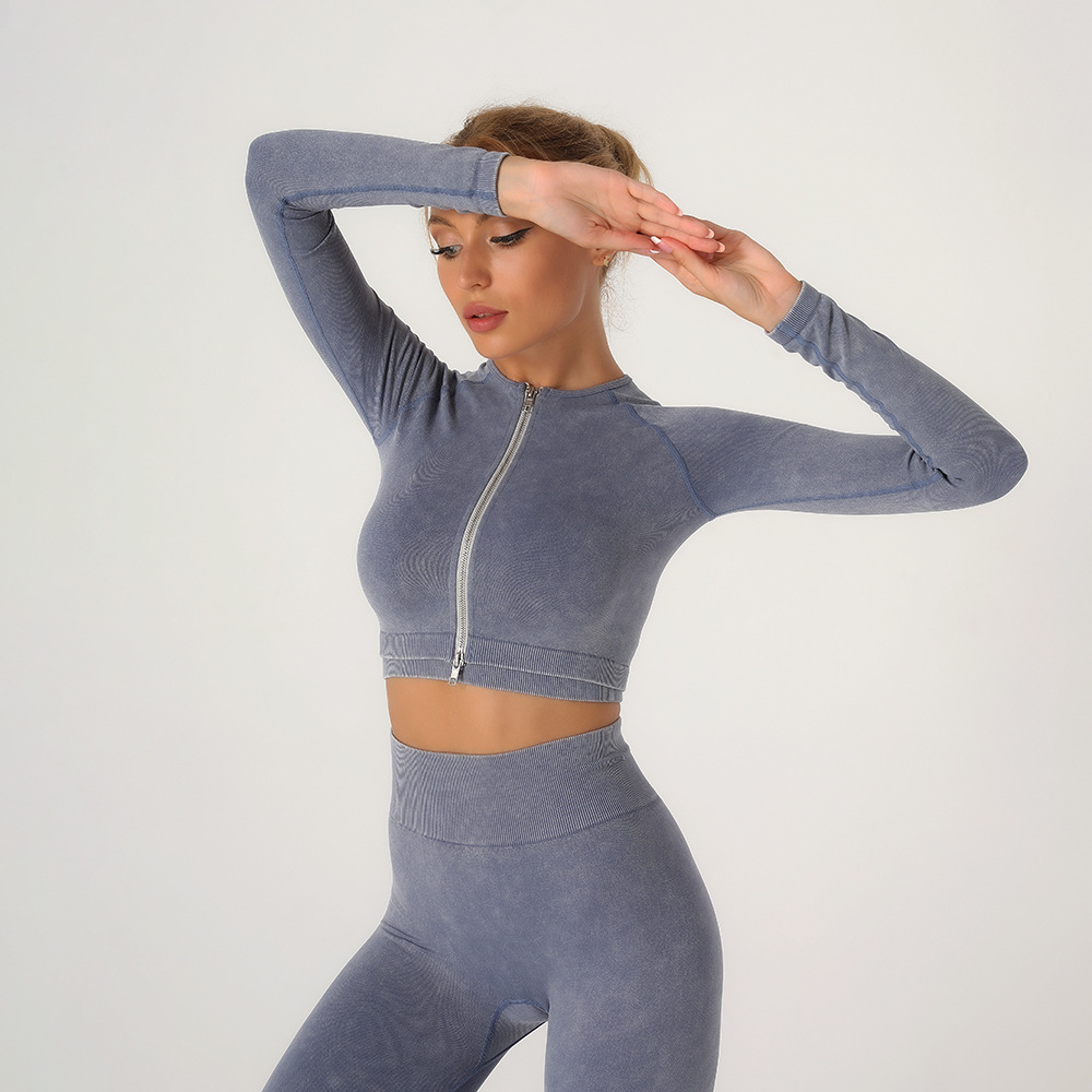 아마존 유럽과 미국 새로운 모래 세척 요가 의류 여성 빠른 건조 의류 지퍼 꽉 레깅스 슈퍼 탄성 스포츠 피트니스 커버스토어 가기
