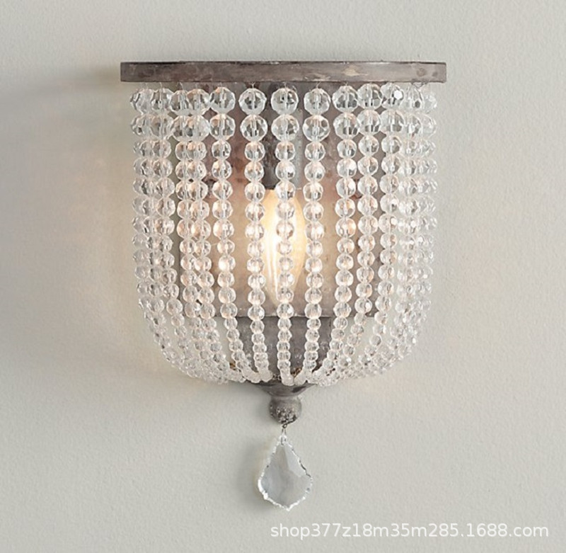 프랑스 복고풍 크리스탈 나무 구슬 벽 램프 복도 복도 벽 램프 어린이 방 침대 옆 램프 공주 벽 램프