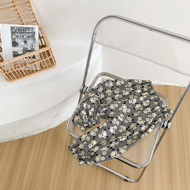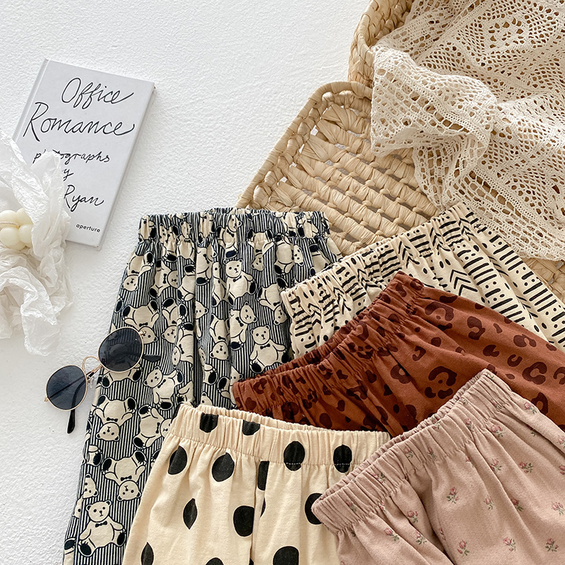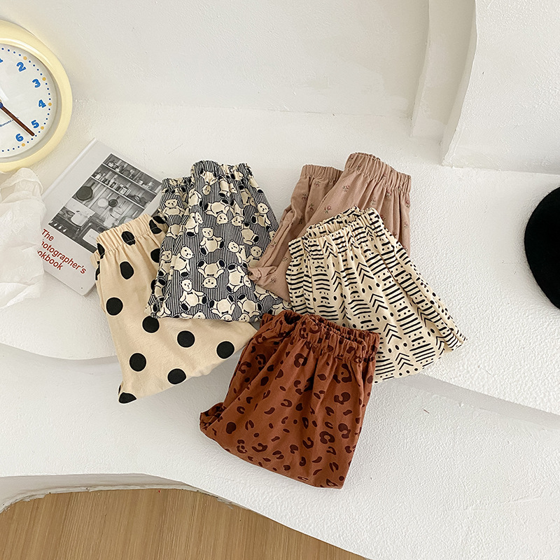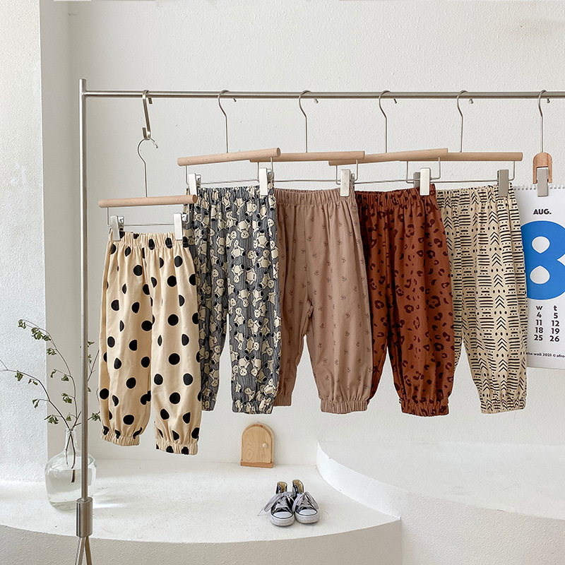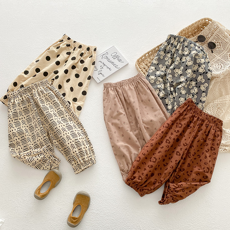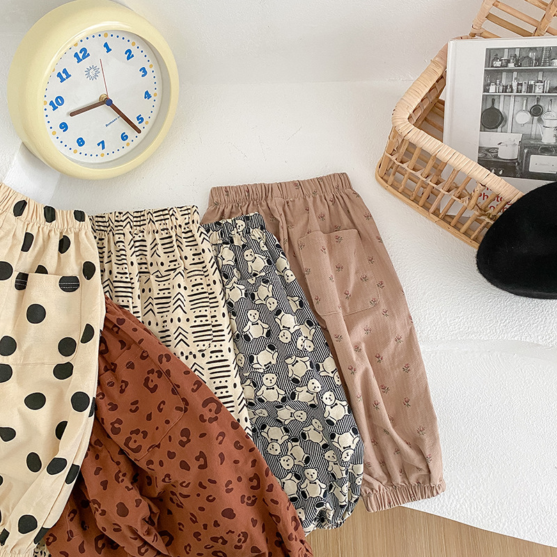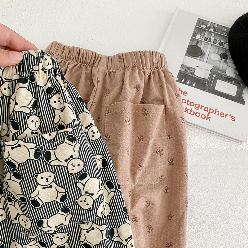 ins2026 봄 아동용 루즈핏 하렘 팬츠, 남아 여아 프린트 코튼 롱 팬츠, 스타일리쉬한 베이비 캐주얼 팬츠스토어 가기