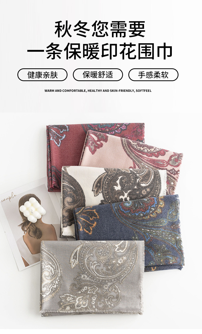 가을 겨울용 캐슈넛 프린트 여성용 모조 캐시미어 숄, 두껍고 따뜻하며 방한 기능이 있는 스카프, 다용도로 활용 가능하며 추운 날씨에도 따뜻한 분위기를 선사합니다.