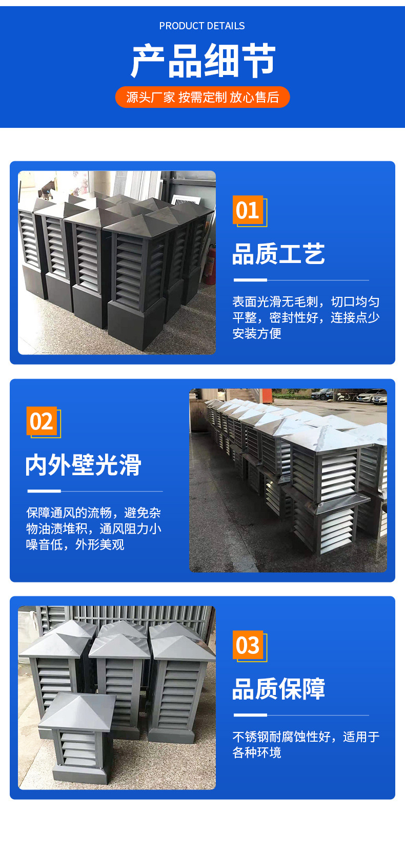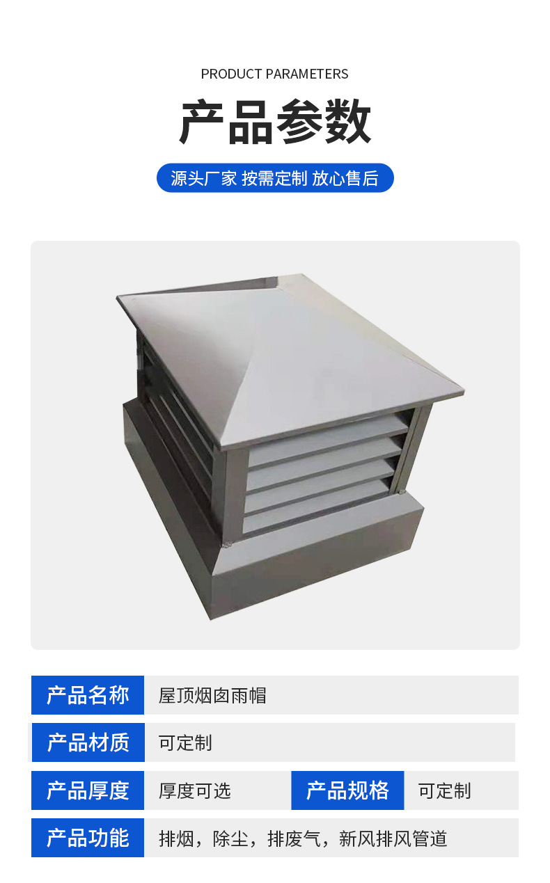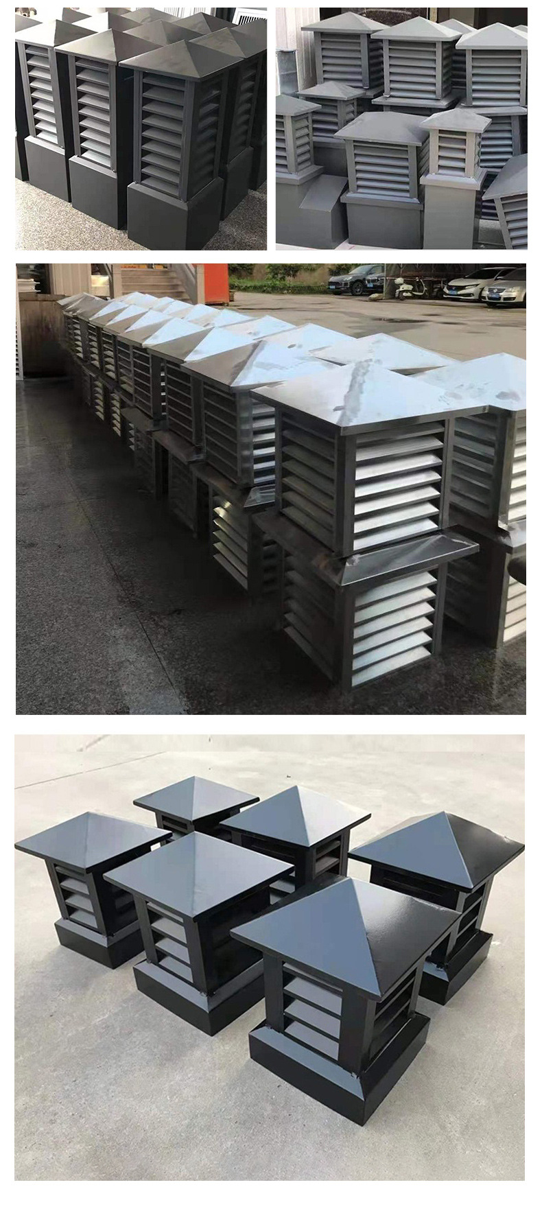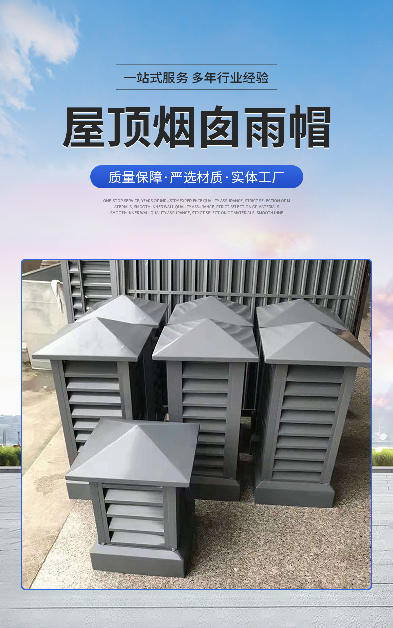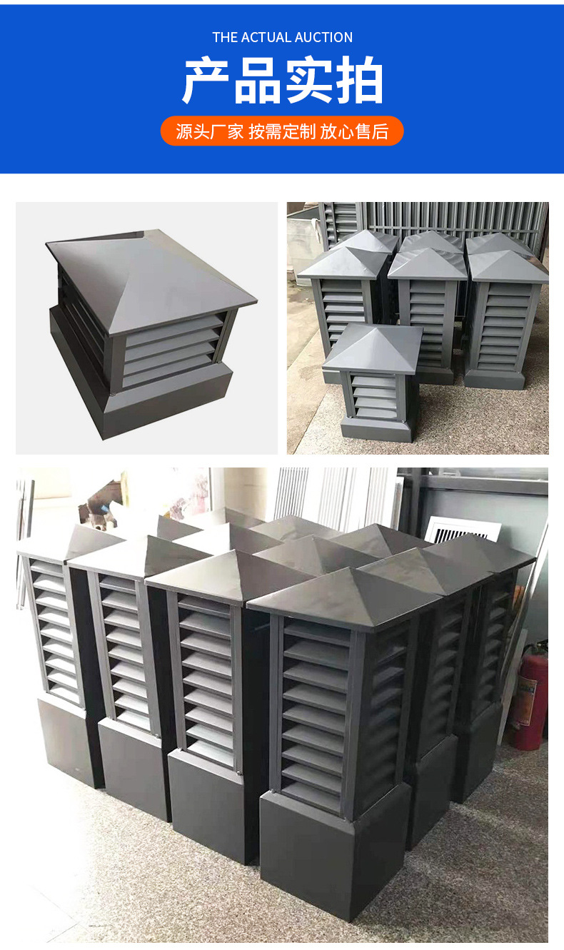 지붕 사각형 알루미늄 합금 루버 후드 비 모자 빌라 지붕 굴뚝 캡 사양 색상 완전한 배기 포트