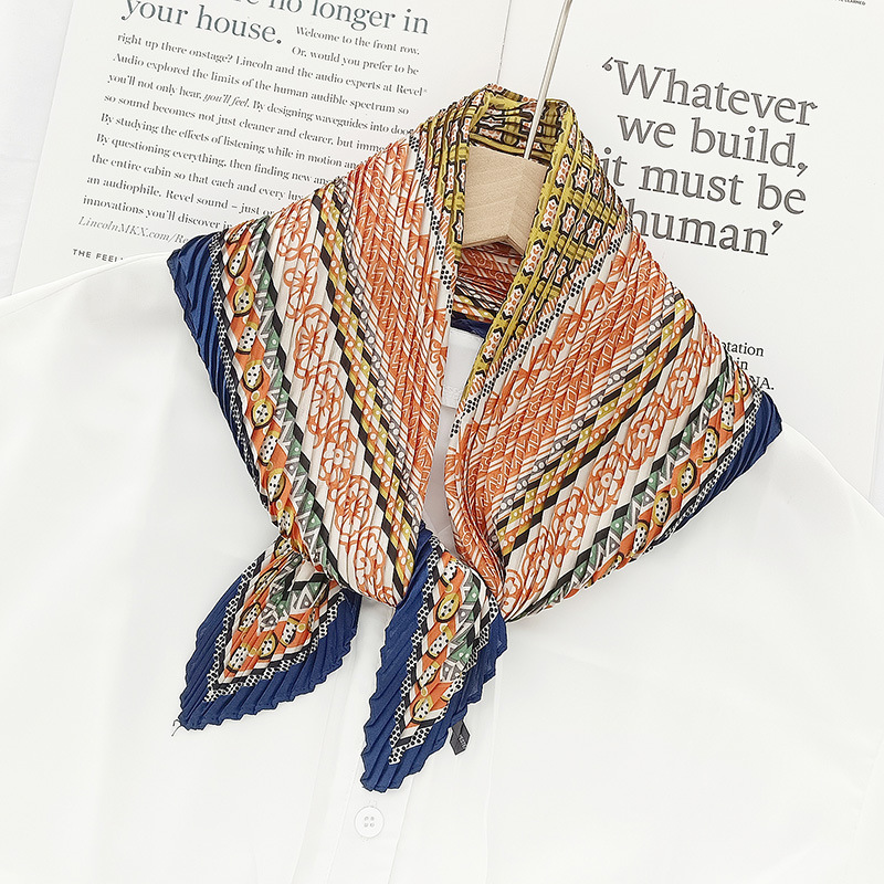 한국식 플리츠 컬러 매칭 작은 실크 스카프 여성용 70 스퀘어 스카프 제작 긴 스카프 전문 장식 실크 같은 프린트 스카프