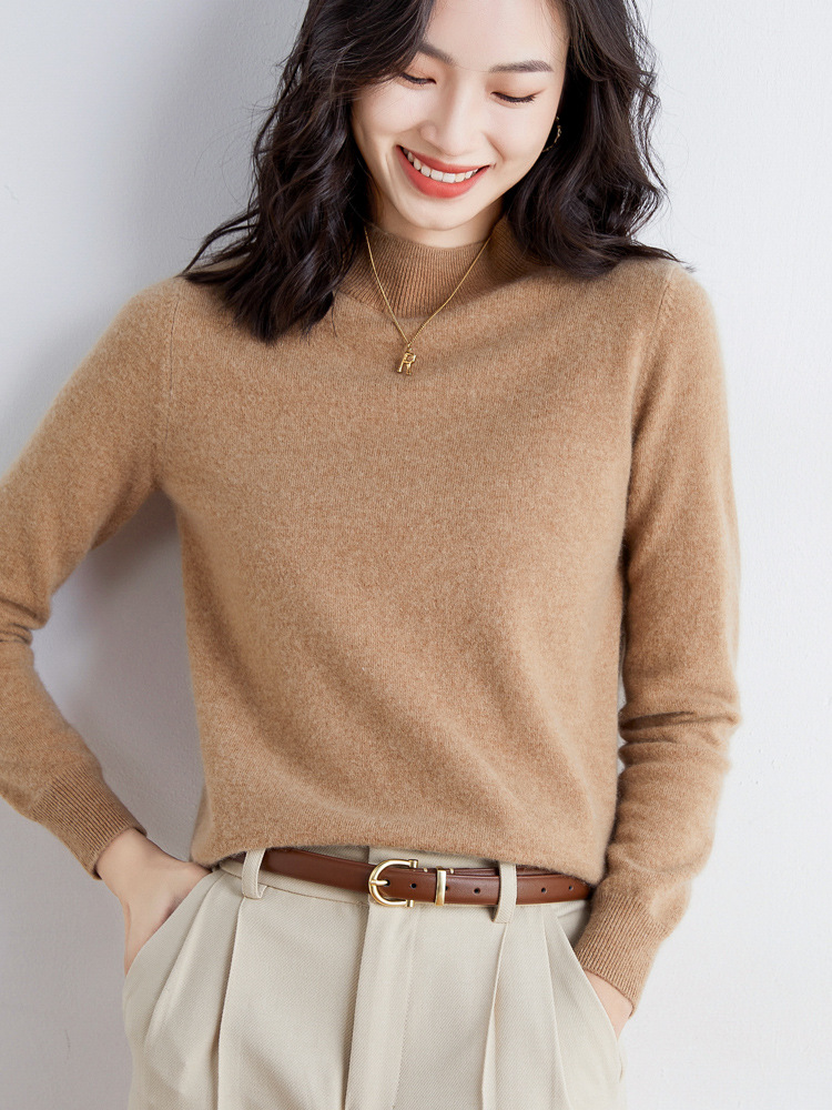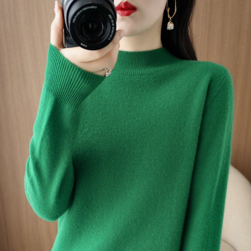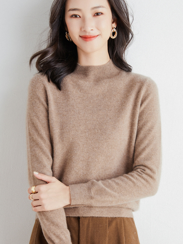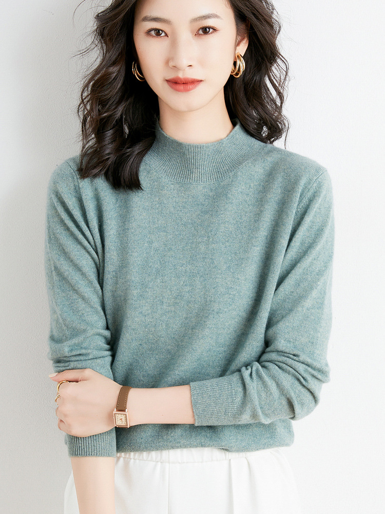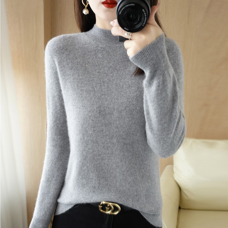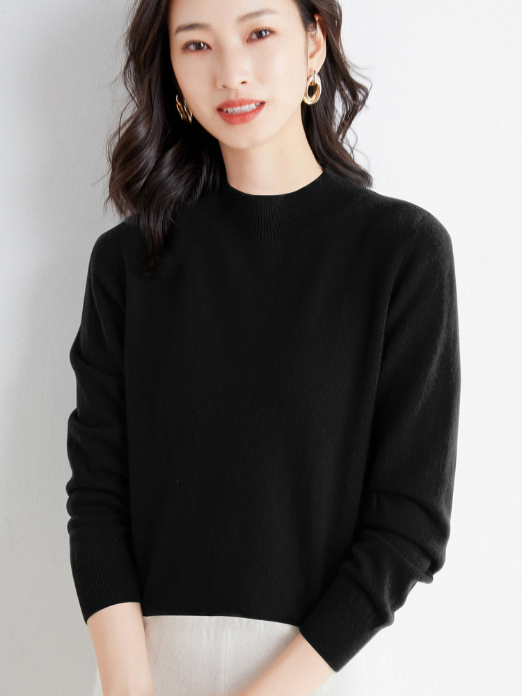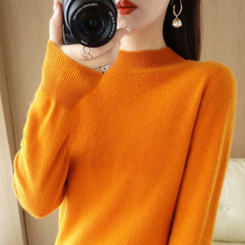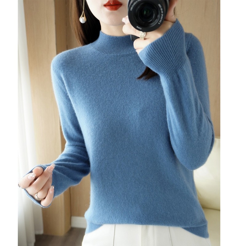 양모 혼방 2025 가을 겨울 신상 여성 루즈핏 하프 터틀넥 단색 숏 풀오버 니트 스웨터스토어 가기