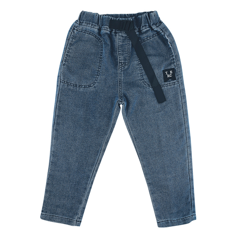 일본 이른 가을 새로운 아동복 청바지 한국식 서양 스타일 소년을위한 어린이 바지 탄성 느슨한 가을 바닥스토어 가기