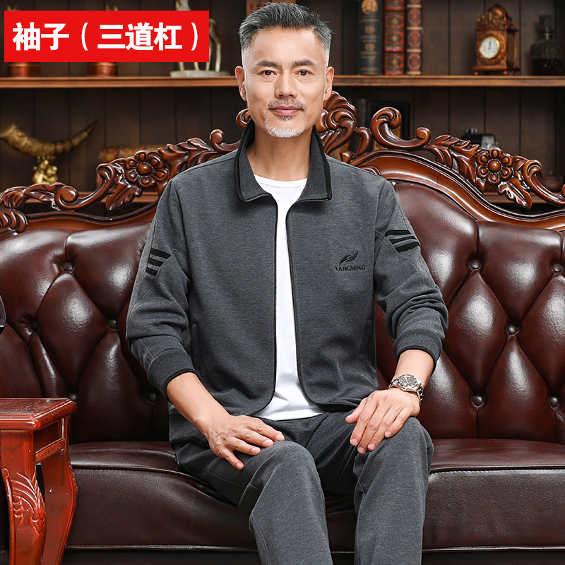 중년 및 노인 남성의 새 아버지 봄과 가을 2 피스 레저 스포츠 세트 옷깃 할아버지 옷 도매스토어 가기
