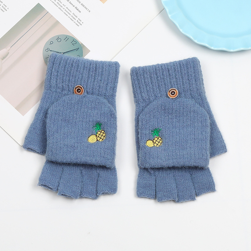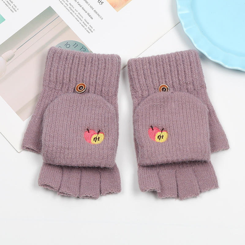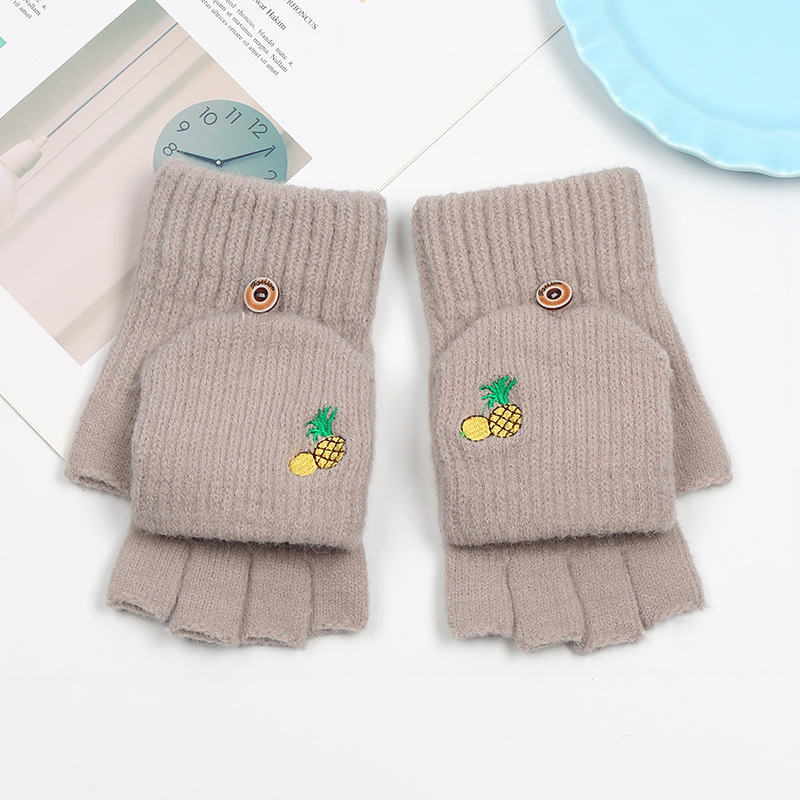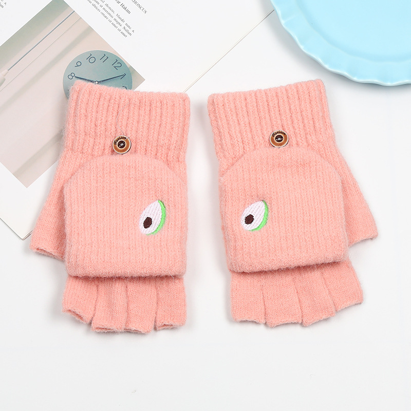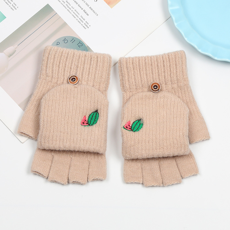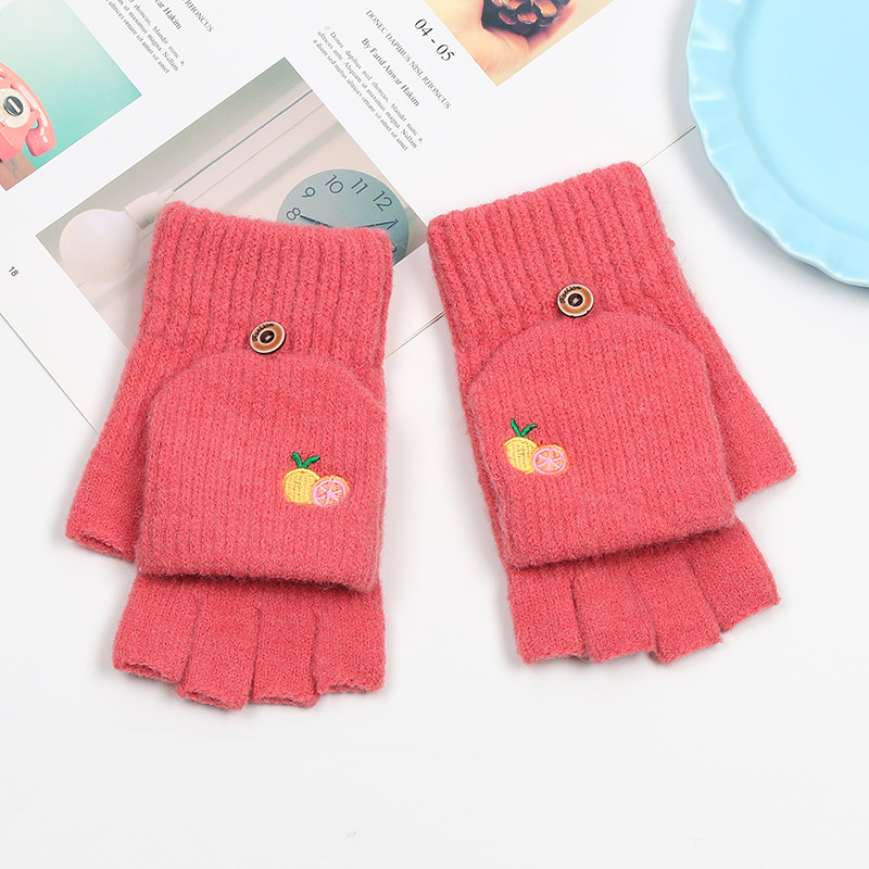 겨울 장갑 따뜻한 여자의 반 손가락 야외 스포츠 사이클링 패션 따뜻한 손가락 기모 이중 사용 자수 장갑