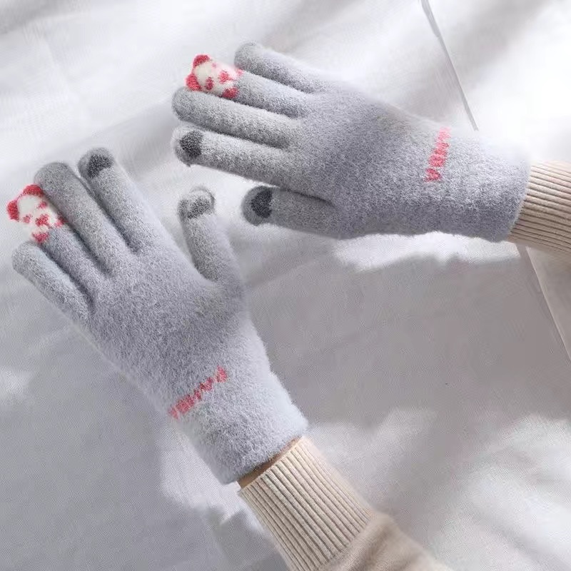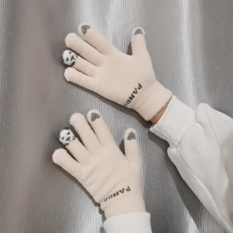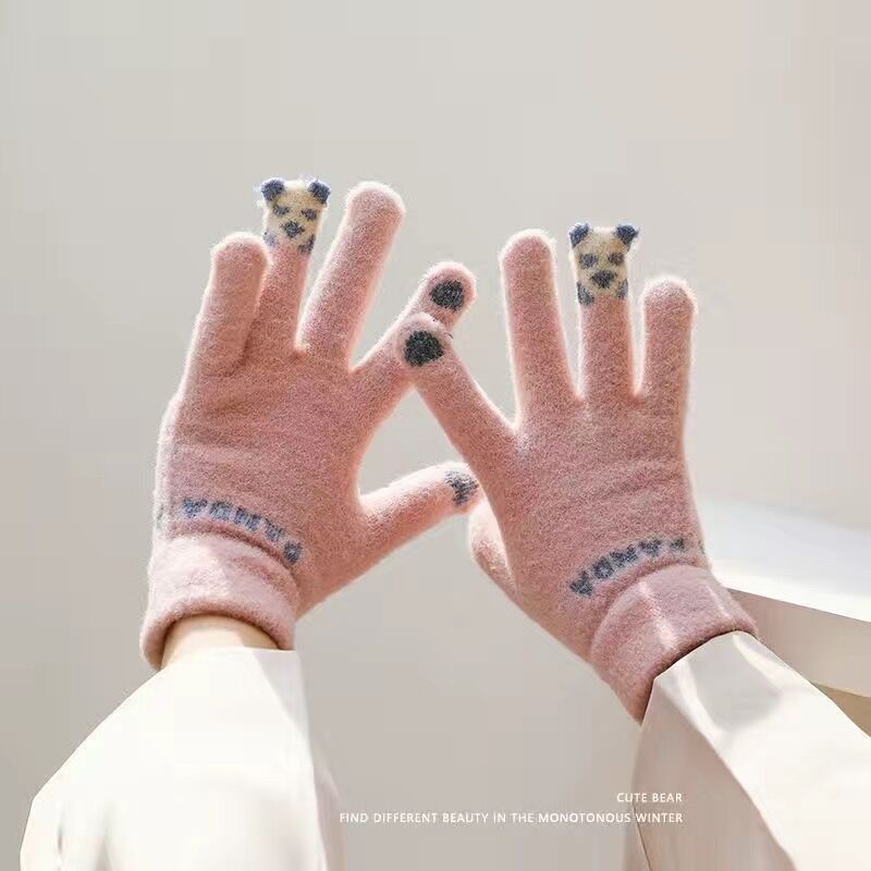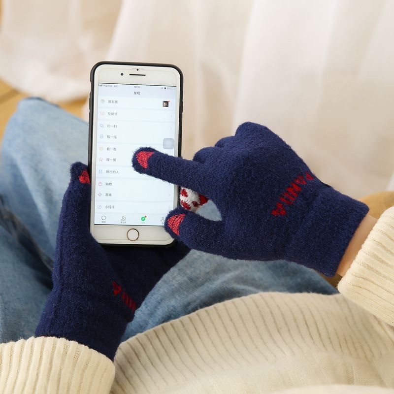 새로운 장갑 겨울 여성의 귀여운 기모 따뜻한 방한 터치 스크린 부드러운 소녀 사이클링 학생 다섯 손가락 가을과 겨울에 사이클링